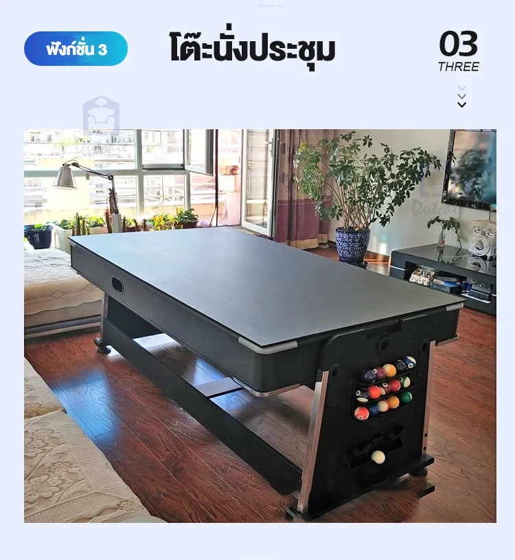 โต๊ะพูลแบบ 4 in 1 มีโต๊ะ Pool โต๊ะฮอคกี้ และ โต๊ะปิงปองในตัว และโต๊ะอเนกประสงค์