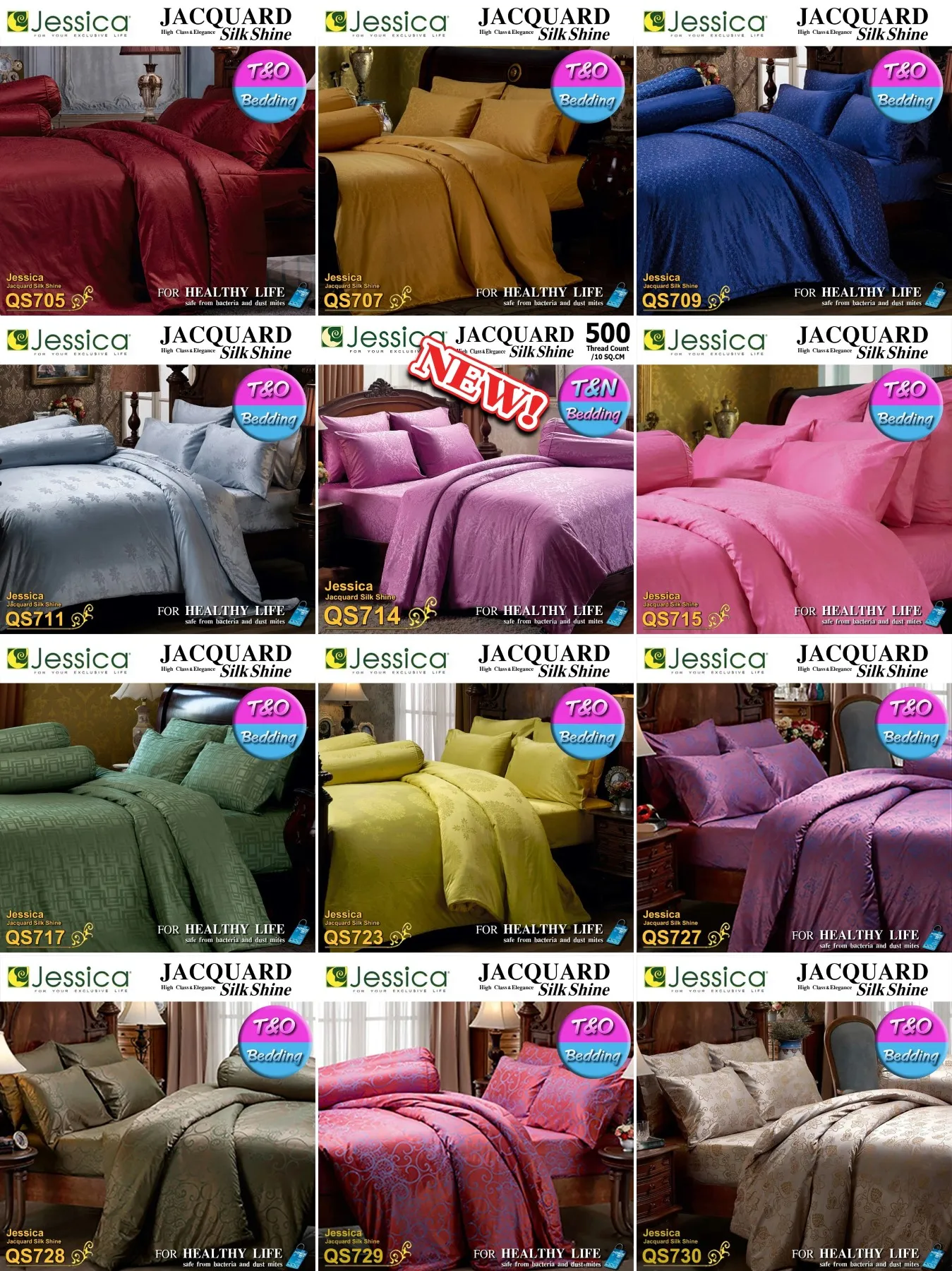 F1801 TeeBed Jessica Jacquard ชุดผ้าปู+ผ้านวม (ขนาด 5 / 6 ฟุต) เจสสิก้า SilkShine 500 เส้น QS736 QS738 QS739 QS740 QS741 QS742 QS743 QS767 #Jacquard2566