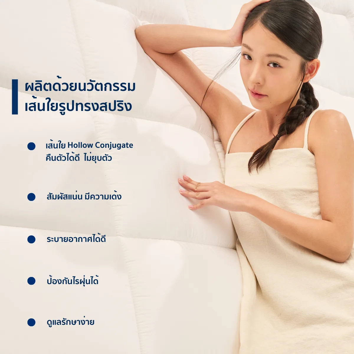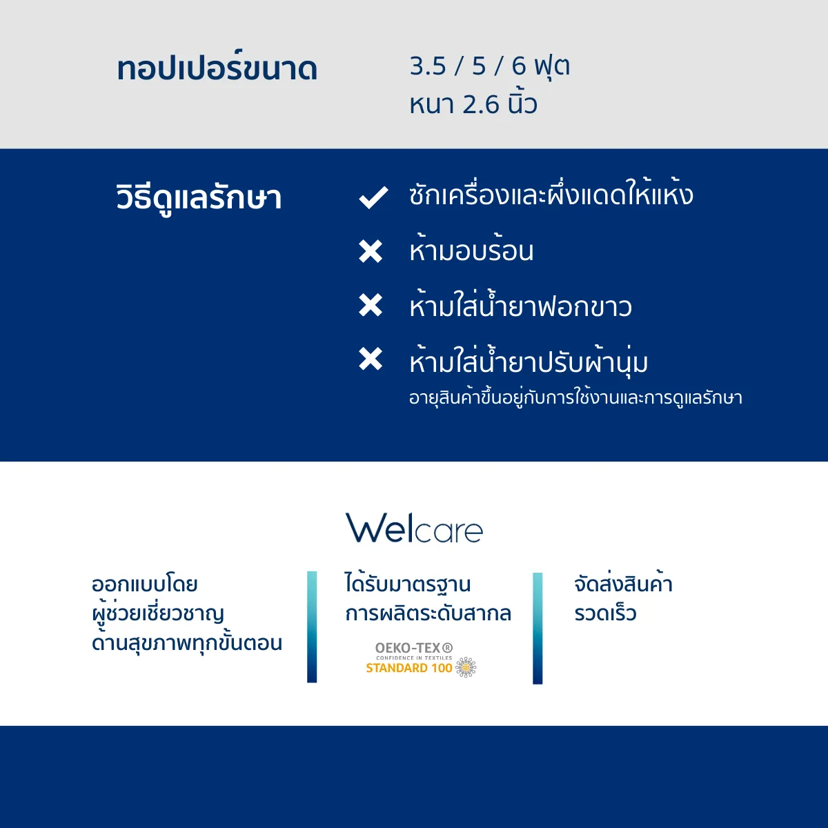 - สามารถนำไปตากแดดและซักเครื่องซักผ้าในโหมดถนอมผ้าได้ ไม่ควรอบลมร้อนโดยเด็ดขาดเส้นใย : Polyesterผ้า : Cotton 100% (400T)ขนาด : 3.5 ฟุต , 5 ฟุต , 6 ฟุตผิวสัมผัสนุ่มลื่น ระบายอากาศได้ดี เป็นวัตถุดิบที่มาจากธรรมชาติจึงมั่นใจได้ในความปลอดภัย