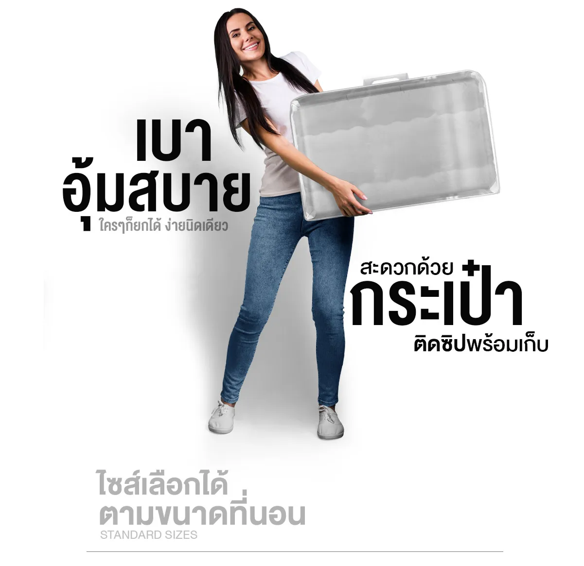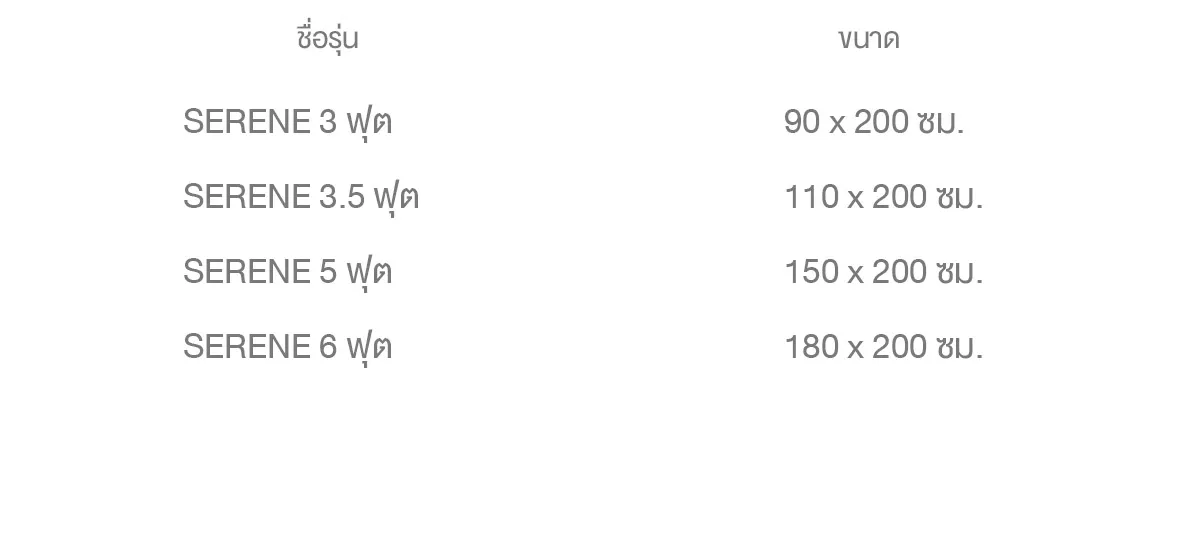 - มี 3 ขนาด คือ 3.5 ฟุต / 5 ฟุต / 6 ฟุต หนา 4 นิ้ว ฟู สะใจ