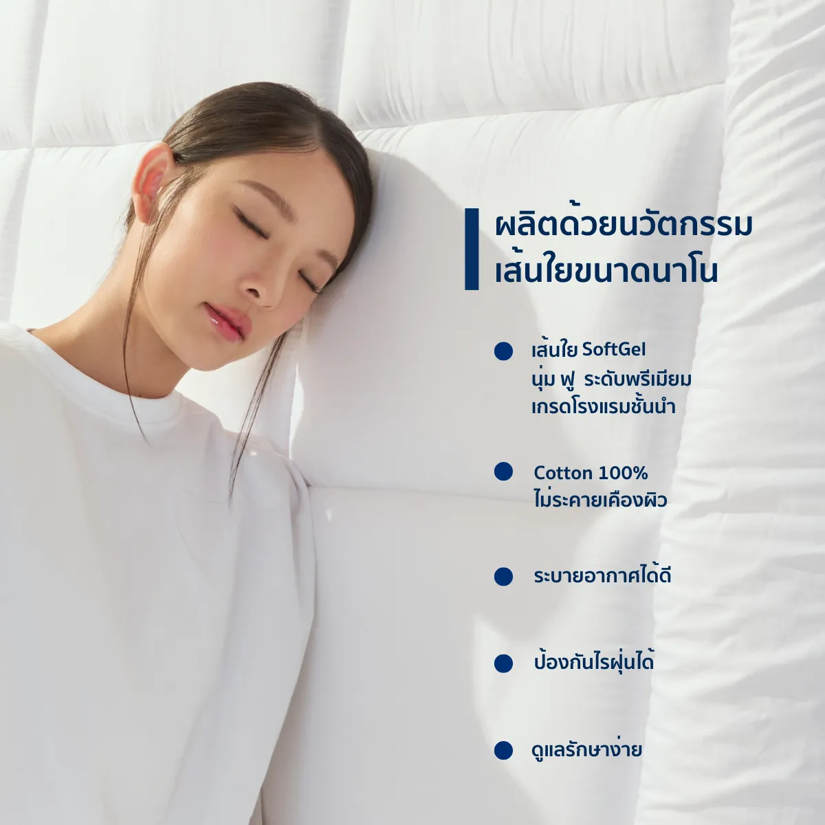- สามารถนำไปตากแดดและซักเครื่องซักผ้าในโหมดถนอมผ้าได้ ไม่ควรอบลมร้อนโดยเด็ดขาดเส้นใย : Polyesterผ้า : Cotton 100% (400T)ขนาด : 3.5 ฟุต , 5 ฟุต , 6 ฟุตผิวสัมผัสนุ่มลื่น ระบายอากาศได้ดี เป็นวัตถุดิบที่มาจากธรรมชาติจึงมั่นใจได้ในความปลอดภัย