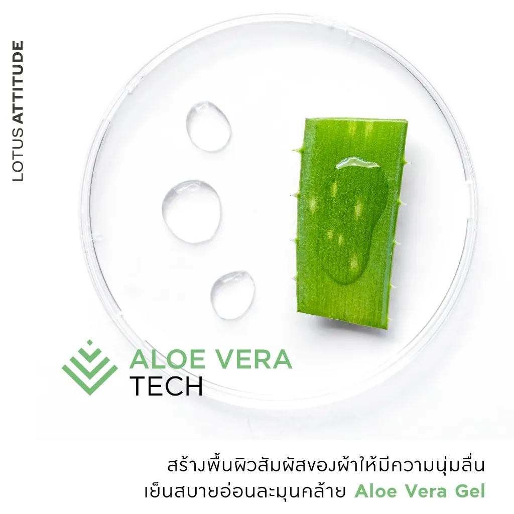 🔻Aloe-Vera Tech อ่อนละมุนต่อผิวพรรณ และเสริมความเย็นบนผิวสัมผัสของผ้าให้เย็นยิ่งขึ้น