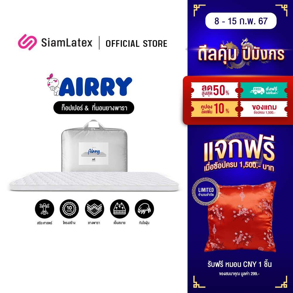 - SiamLatex ที่นอนยางพารา Airry : ท็อปเปอร์ยางพาราอัดแน่น หนา 2-3 นิ้ว (ขนาด 3 / 3.5 / 5 / 6 ฟุต)