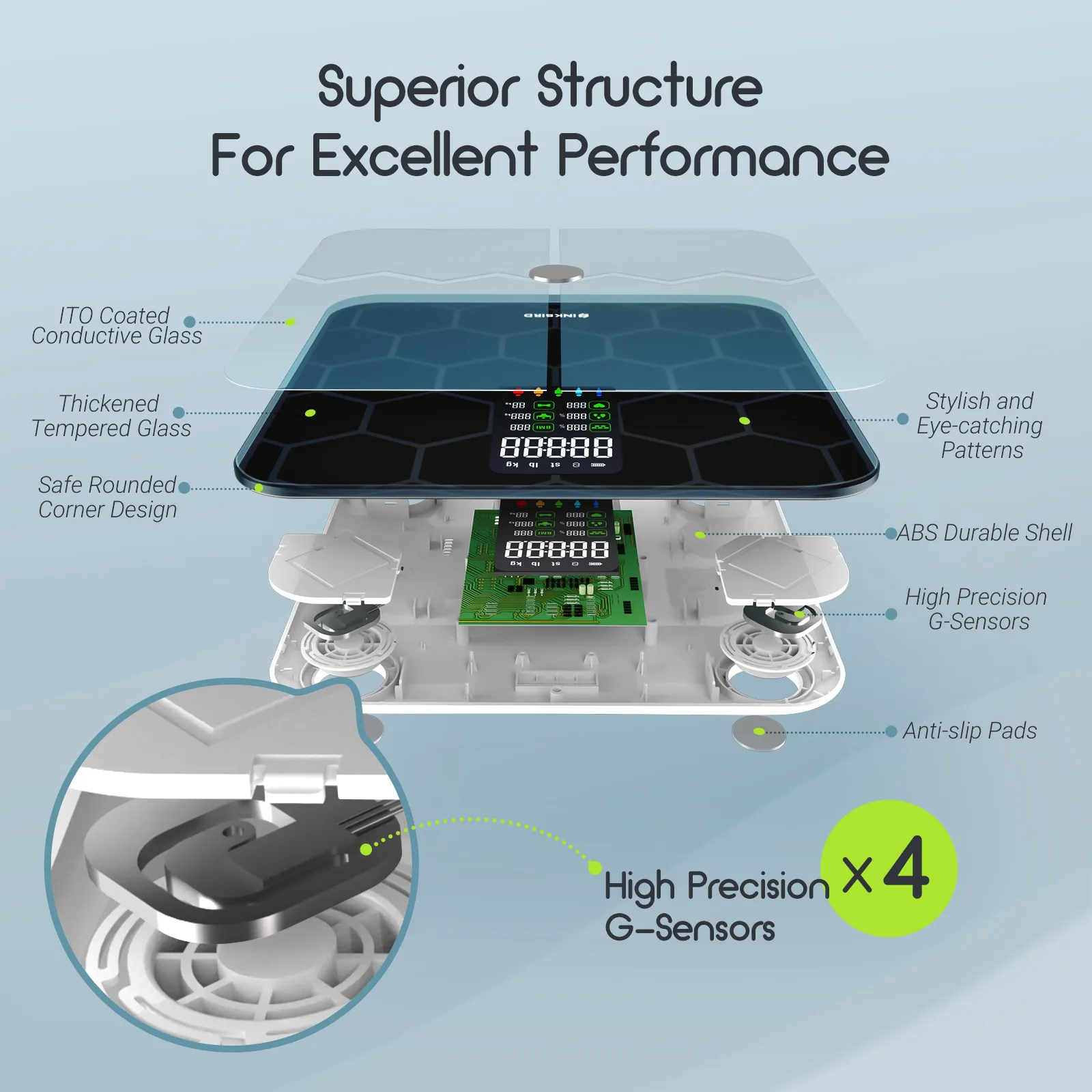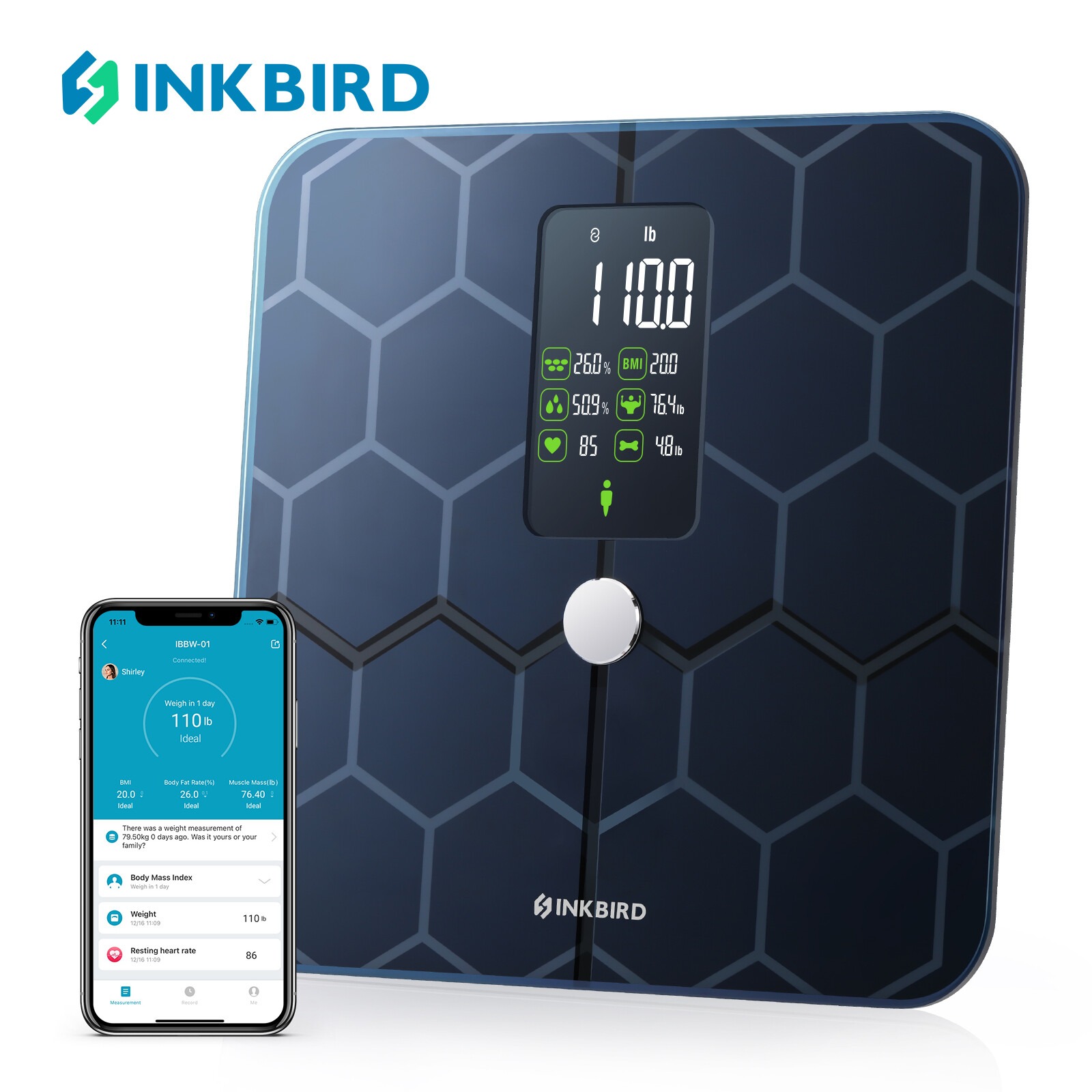 INKBIRD เครื่องชั่งน้ำหนักแบบดิจิตอล สำหรับมนุษย์เครื่องชั่งสำหรับสถานออกกำลังกายบลูทูธอัจฉริยะการวิเคราะห์ของตัวชี้วัด19ตัว