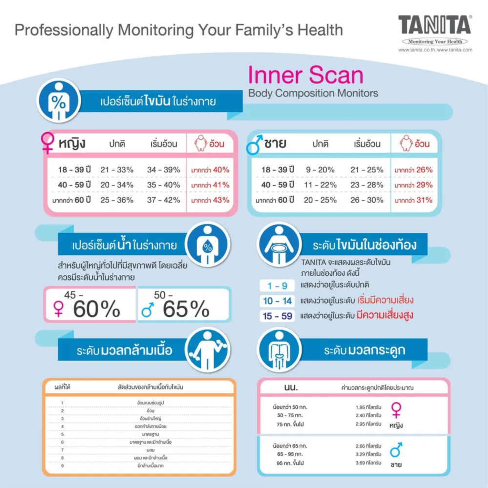 – บอกสัดส่วนกล้ามเนื้อและไขมัน (Physical Rating)