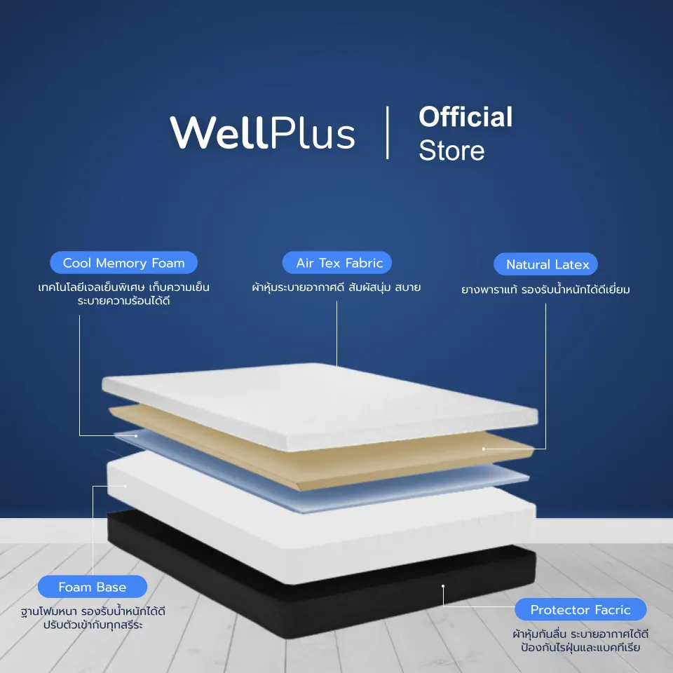 Wellplus ที่นอนยางพาราแท้ 100% รุ่น Archer หนา 8 นิ้ว Cool Gel Memory Foam นุ่มแน่น ฟื้นฟูร่างกาย