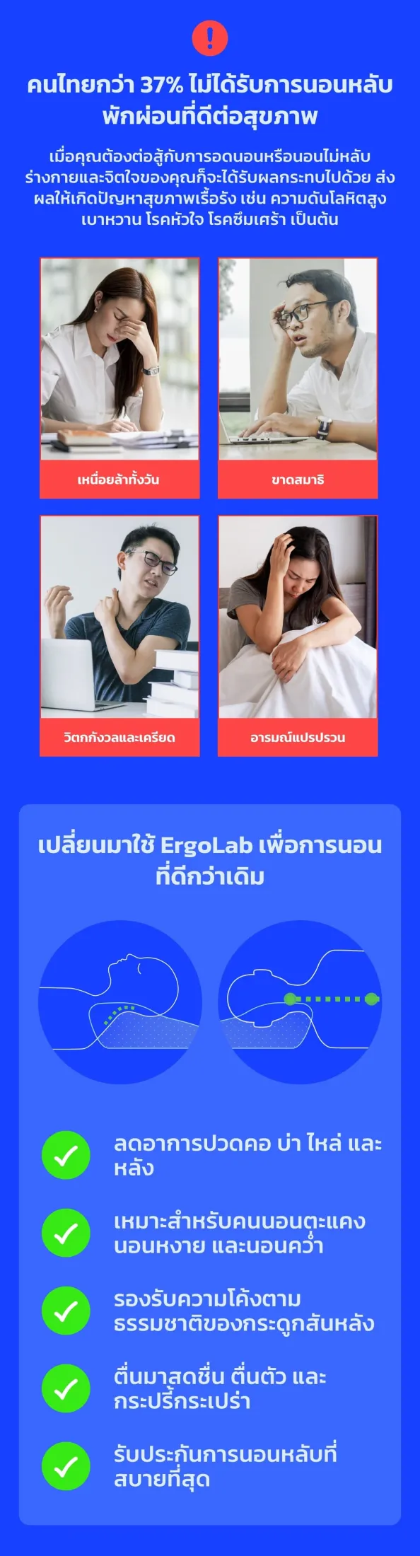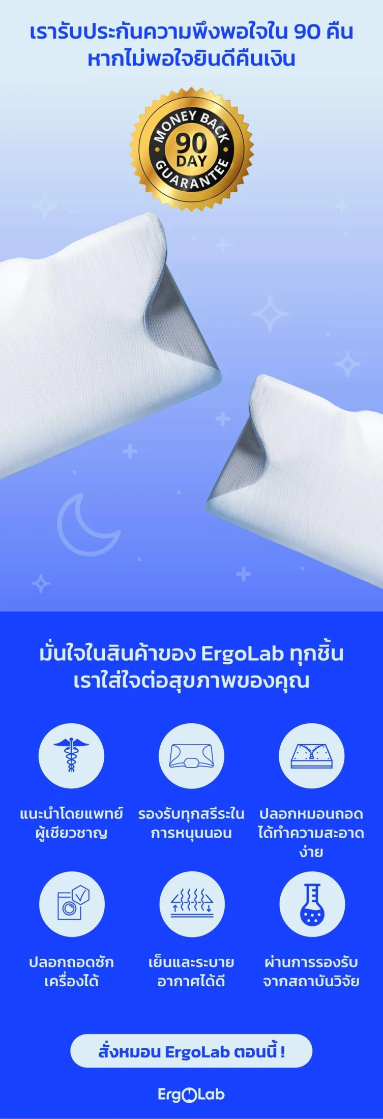 หมอน Ergolab Deep Sleep หมอนเพื่อสุขภาพ ขจัดอาการปวดคอ หมอนกระดูกและข้อ เปลี่ยนชีวิตการนอนหลับของคุณด้วยการนอนหลับลึก(ทดลองใช้ฟรี 90 วัน)