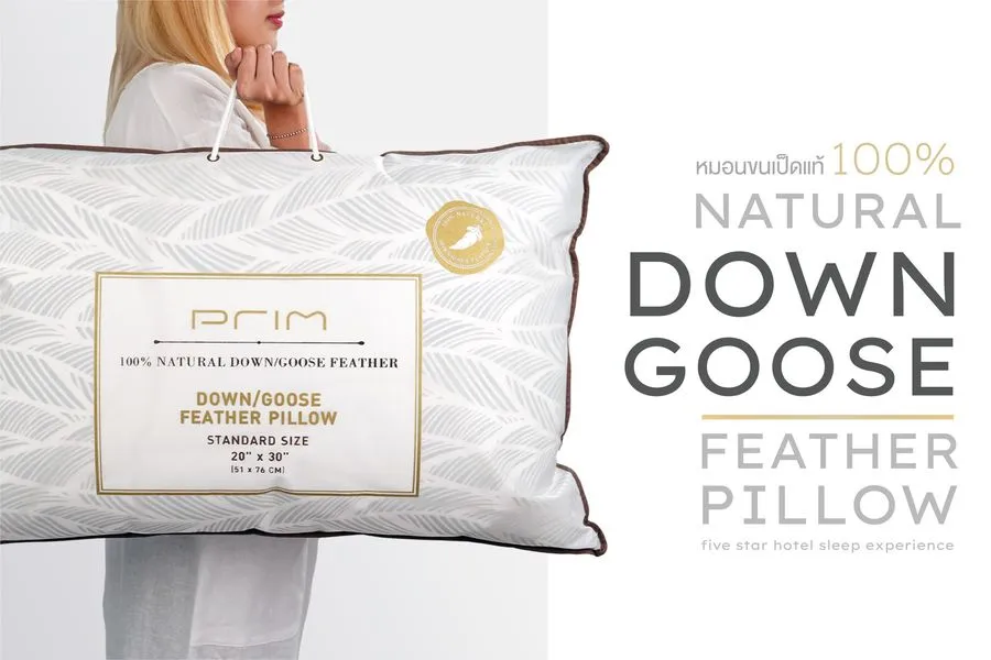 PRIM หมอนขนเป็ด ที่มีส่วนผสมของ ก้านขนห่าน WGF 30% และ ขนเป็ดอ่อน WDD 70% เหมาะสำหรับผู้ที่ชอบนอนหมอนต่ำ