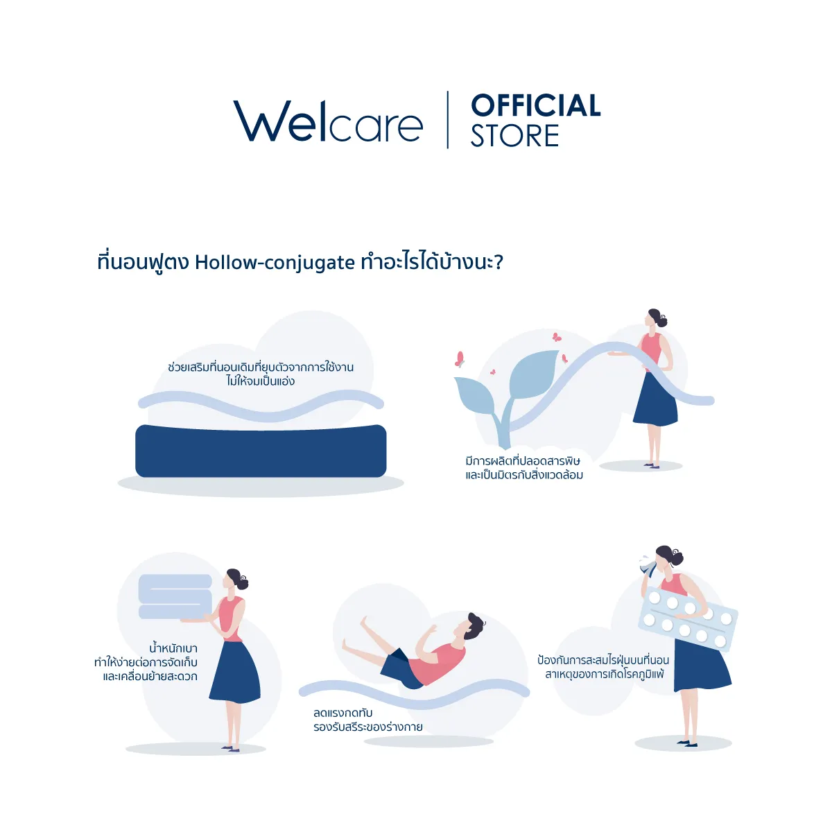 F1833 [Welcare Official] Welcare ที่นอนฟูตง3.5 , 5 , 6 ฟุต Futon-bed Hollow-Conjugate เเบบม้วน (ไม่มีสายรัด)