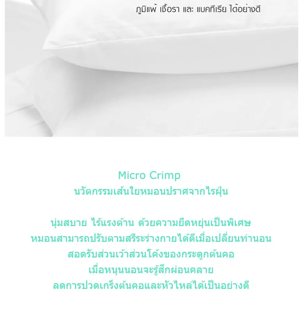 • ป้องกันไรฝุ่นและเชื้อราได้ดี คุณสมบัติของหมอน Luxury Micro Crimp