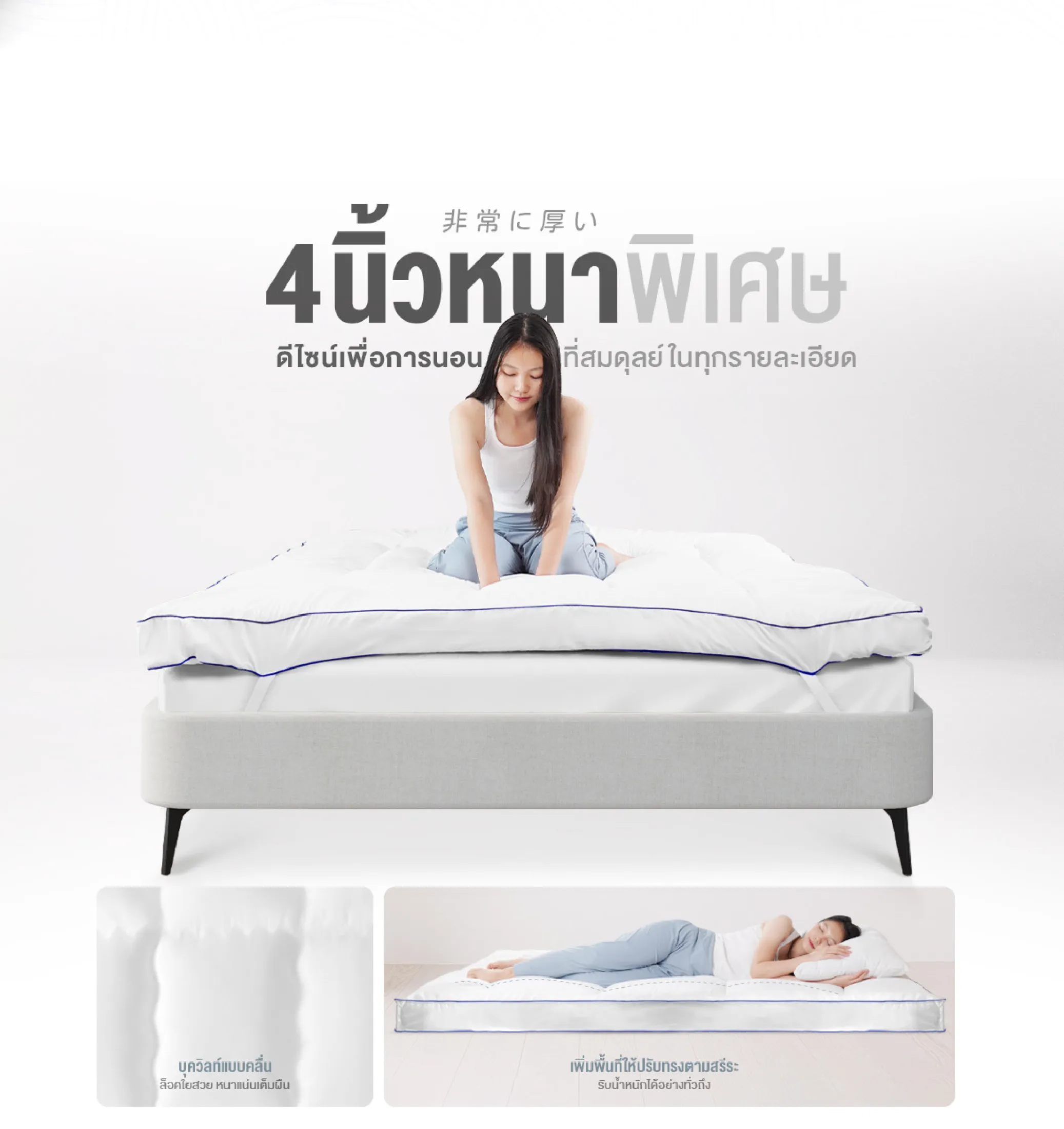 • อัดแน่นเส้นใย หนานุ่มสุดๆ ถึง 4 นิ้ว และมีน้ำหนักเบาเพียง 2 กิโลกรัม