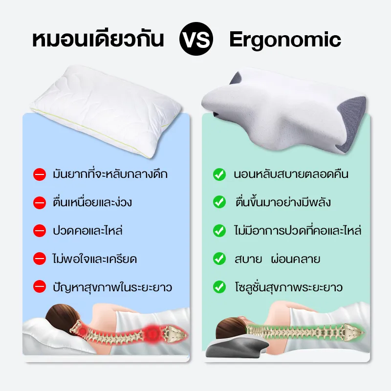 หมอนเพื่อสุขภาพ หมอนนวดคอ หมอนรองคอแบบหน่วยความจำ ช่วยพยุงคอรักษาส่วนโค้งปกติของกระดูกสันหลังส่วนคอลดแรงกดที่คอ