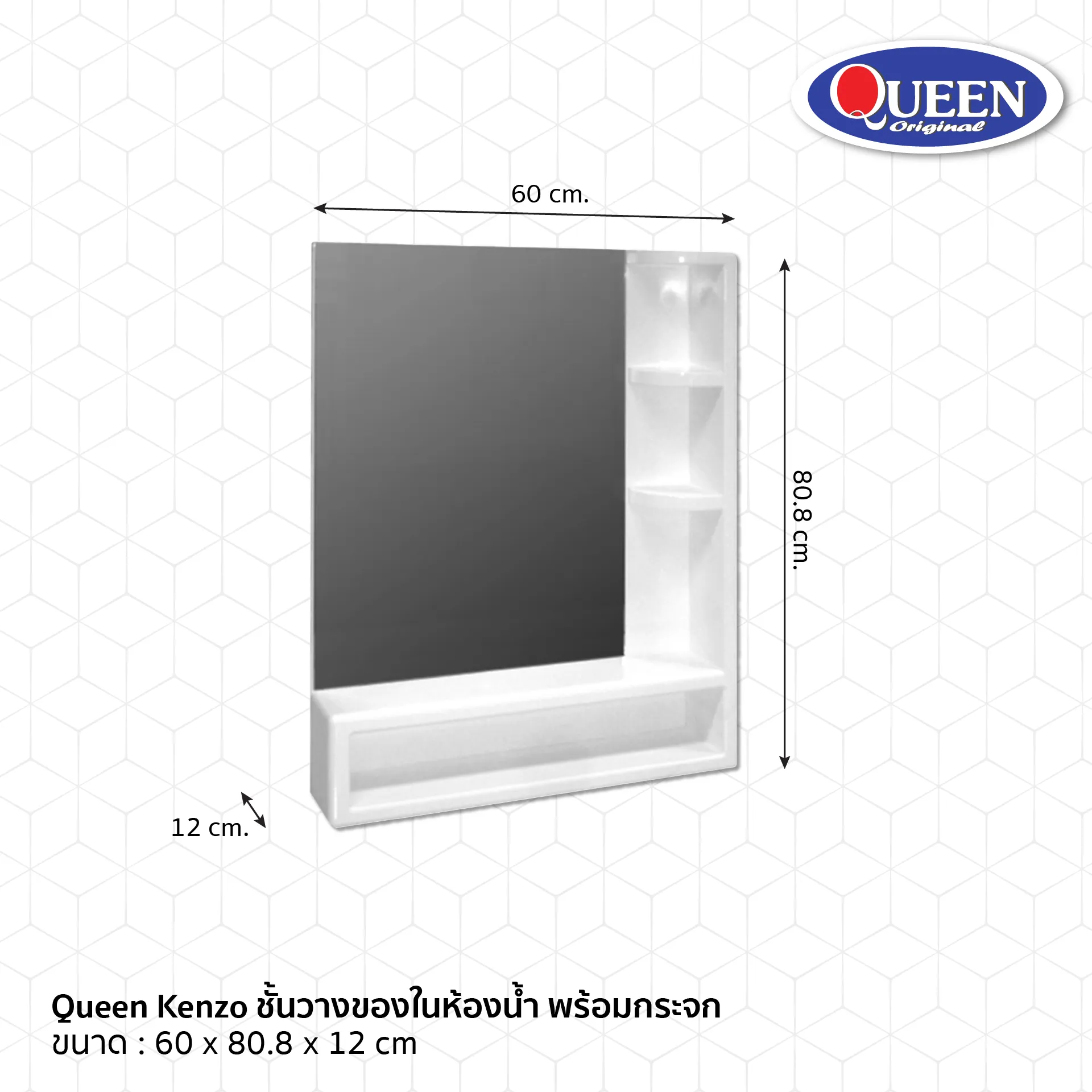 Queen Kenzo ชั้นวางของในห้องน้ำ พร้อมกระจก ของแท้จากโรงงาน ขนาด 60×80.8×12 ซม.