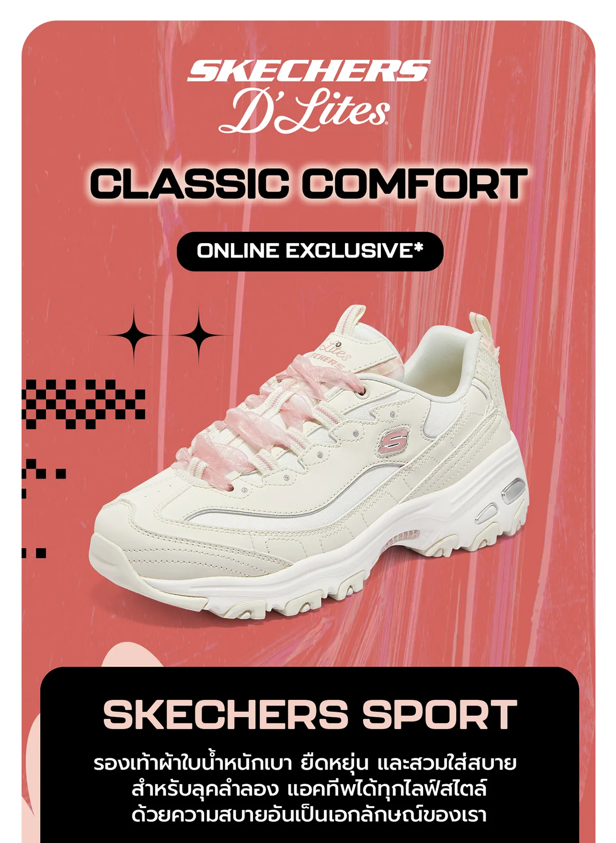 - Keep that classic comfortable style and comfort going with the Skechers D’Lites shoe. This stylish sporty lace-up sneaker features a synthetic and mesh upper with a cushioned Air-Cooled Memory Foam insole.