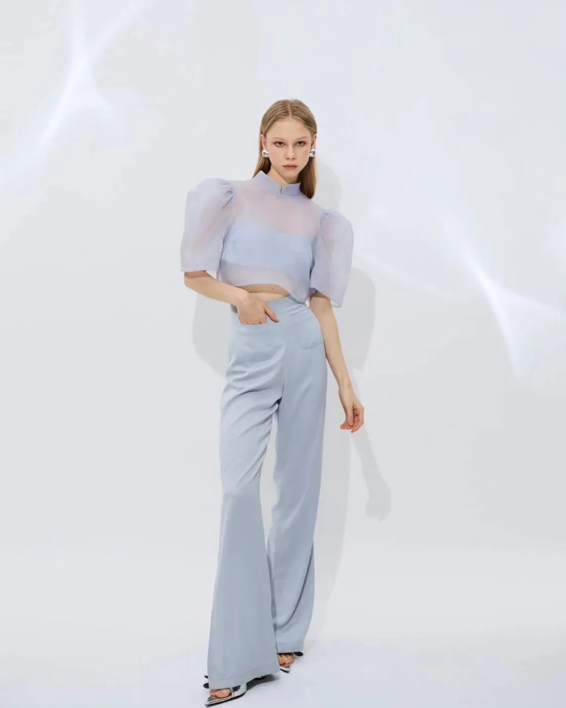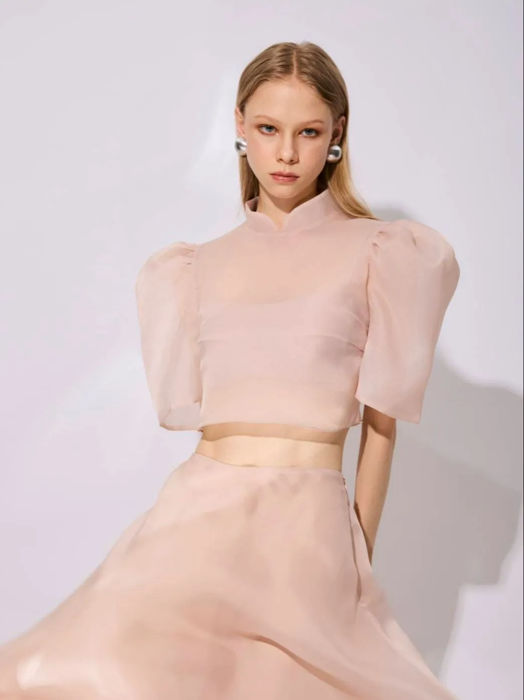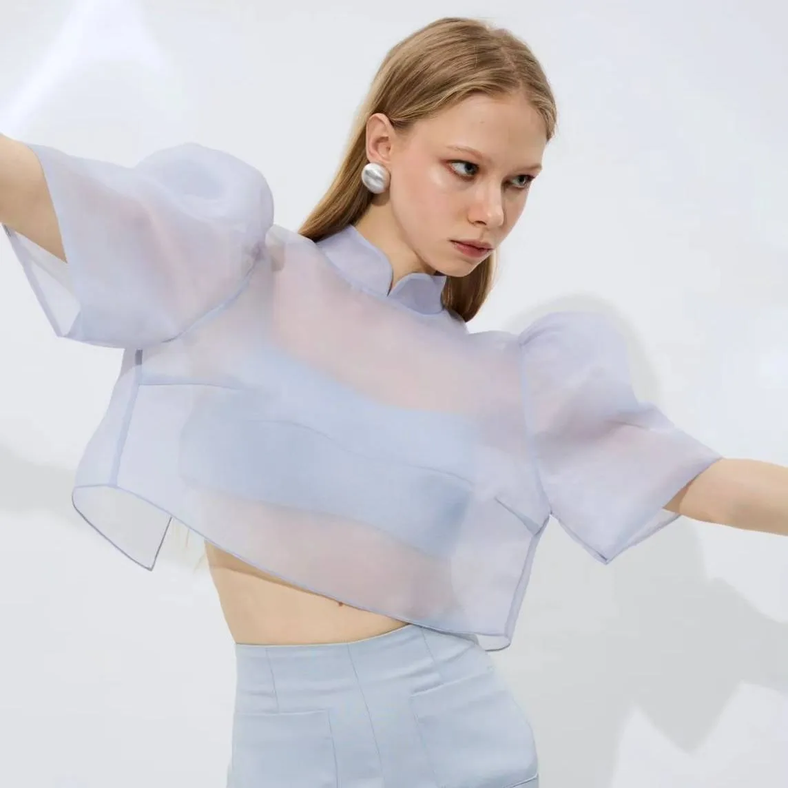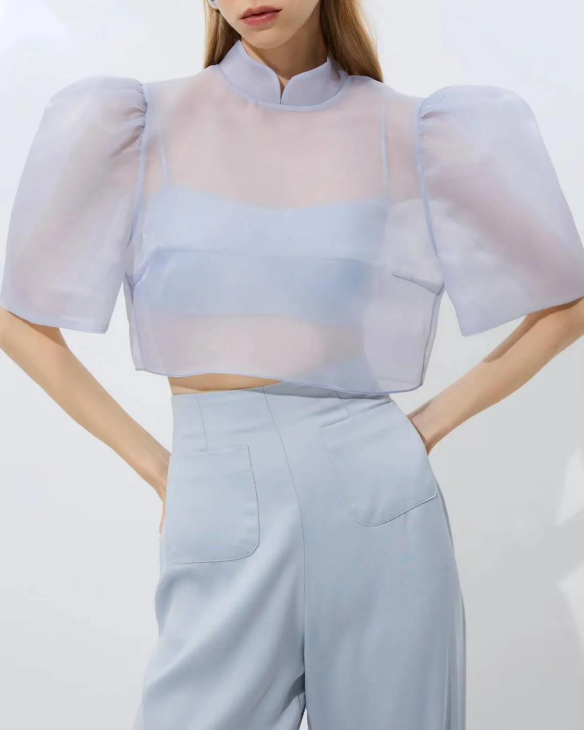 NICHP : Lunar top เสื้อคอจีน ผ้าออแกนดี้ มีเสื้อด้านใน สินค้ามี 2 ชิ้น