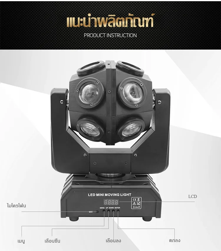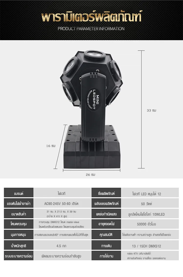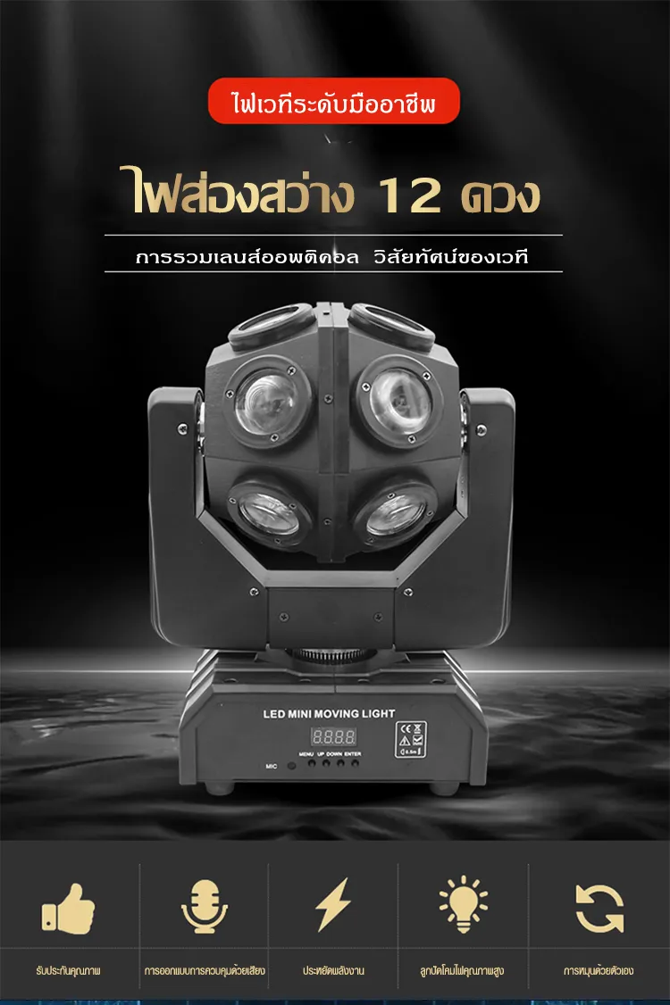 - 12 shake head beam lampsSix advantagesImported lamp beadSeniceasy to useRotationHigh -definition displayRun speedVoltage: AC110-220V 50-60HzLight source: 12*12W four -in -oneTotal power: 200WChannel: 13/15chLevel: Level 540 °Vertical: Vertical rotationNet weight: 4.5kgMao Zhong: 5KGSize: 260*160*350mmControl mode: DMX512, Master Cong, Sound Control,Self-propelled