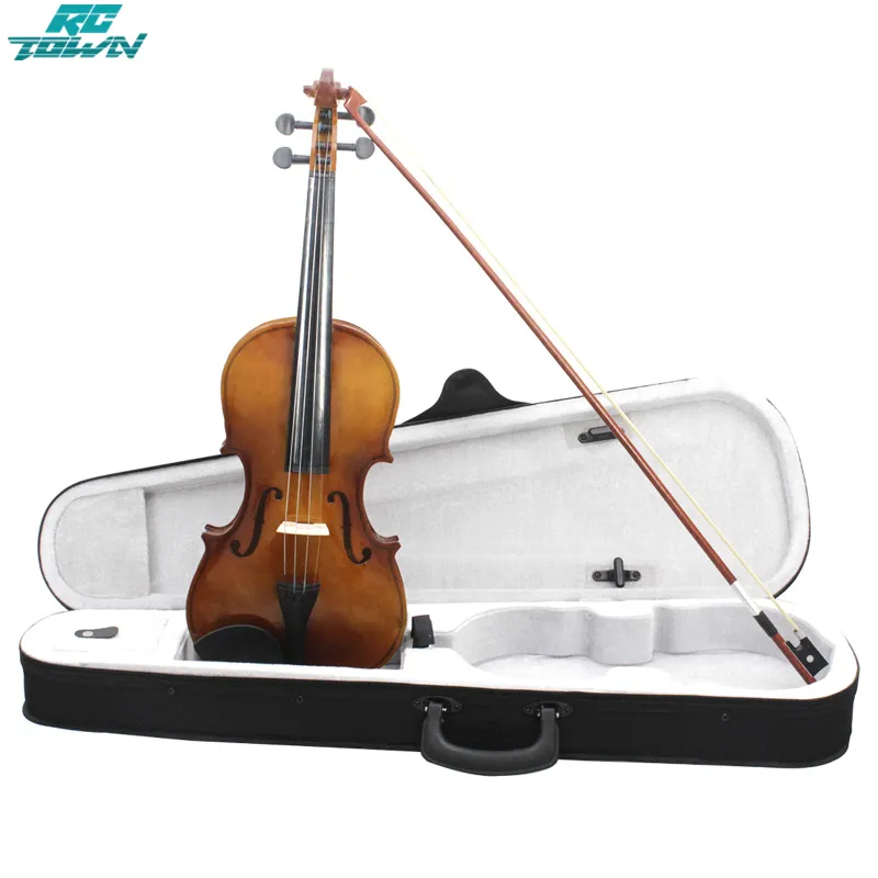 ไวโอลินอะคูสติกถือโบว์กล่องไม้เนื้อแข็งไวโอลินไม้แบสสำหรับมือใหม่วงออเคสตราคอนเสิร์ต