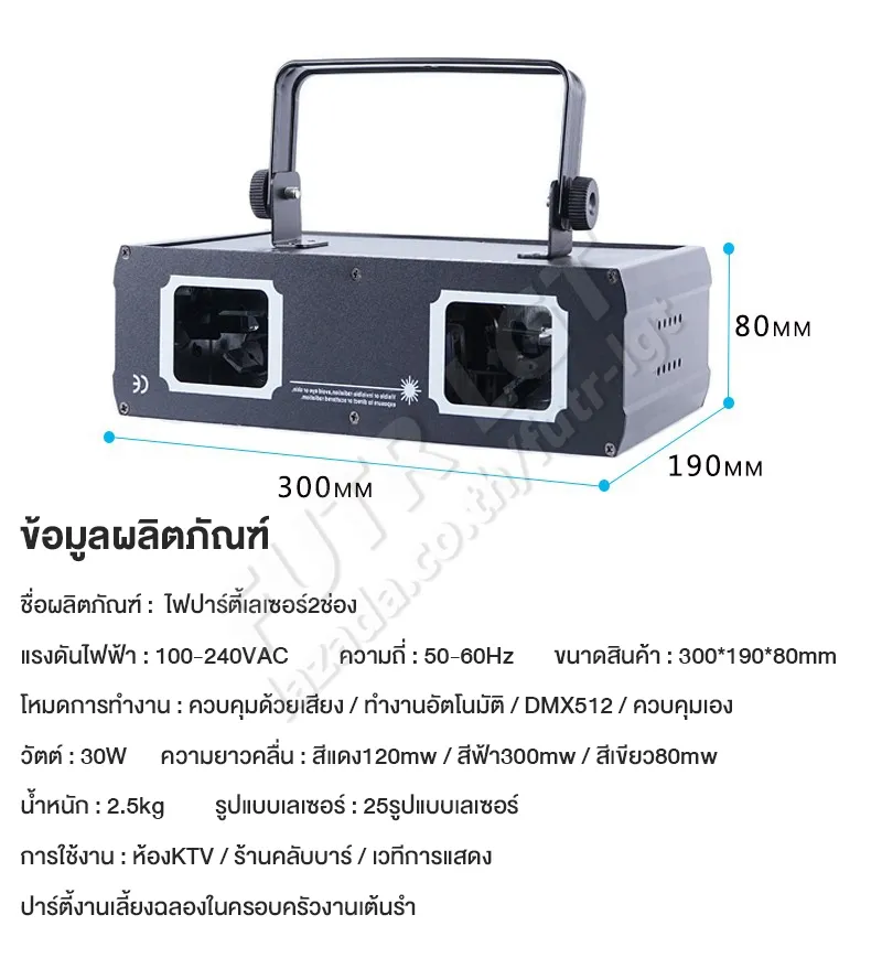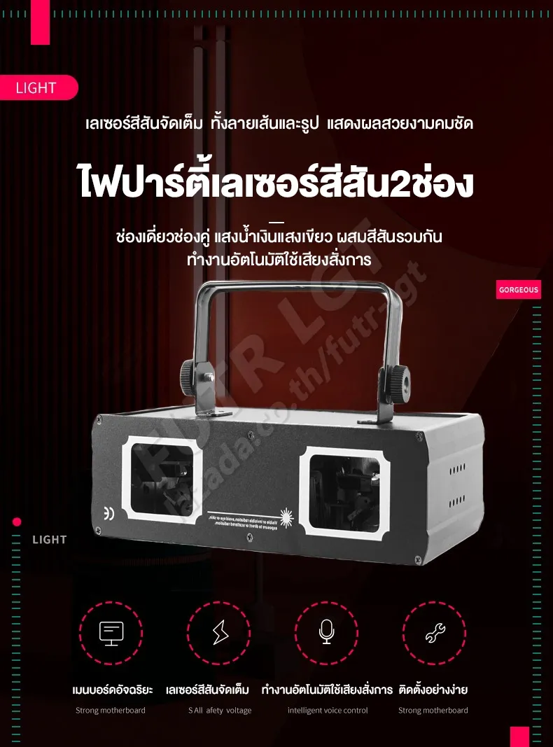 ไฟดิสโก้ Laser 2/RGB Full Color disco laser light ไฟเลเซอร์ดิสโก้ ไฟเธค ไฟปาตี้กระพริบตามจังหวะเพลง