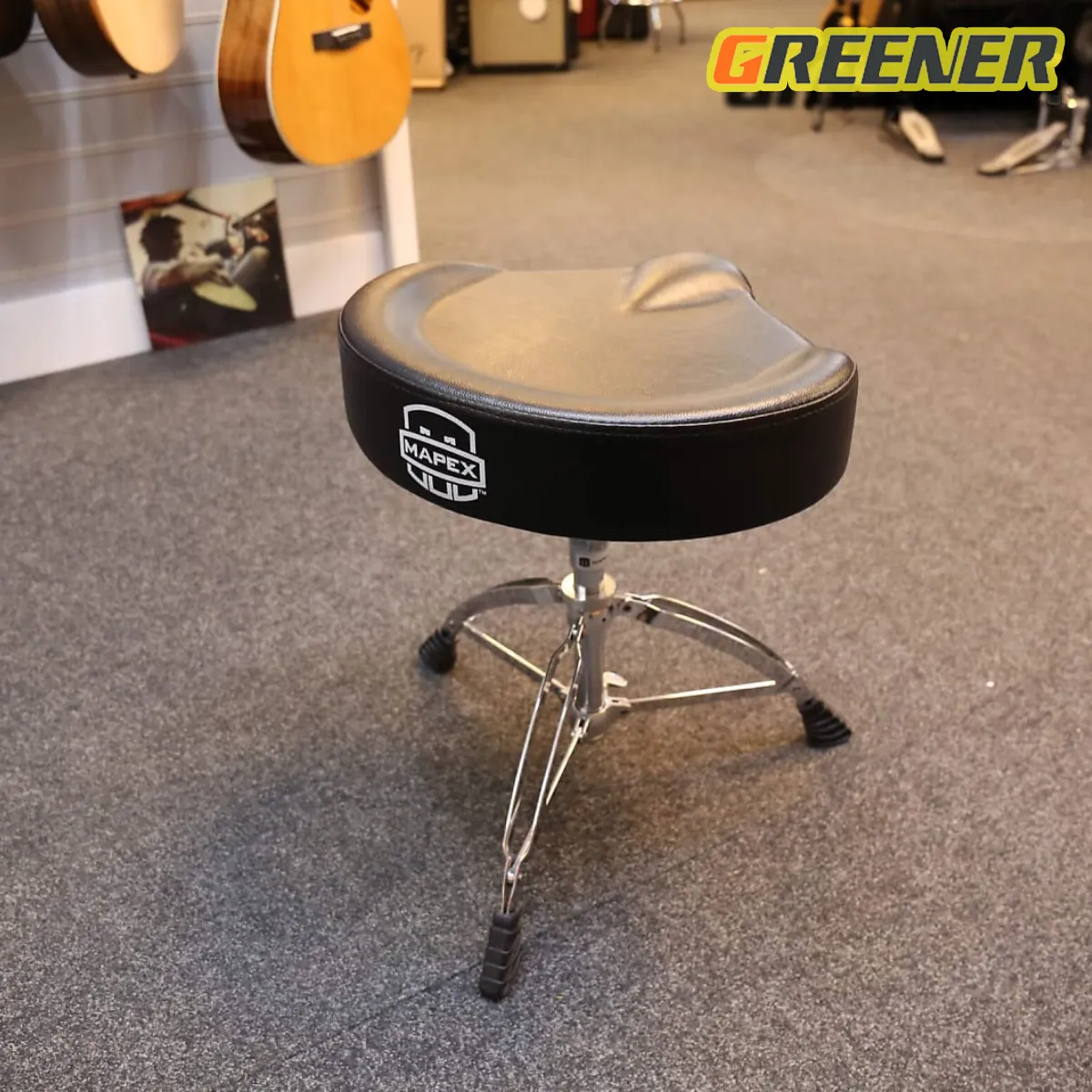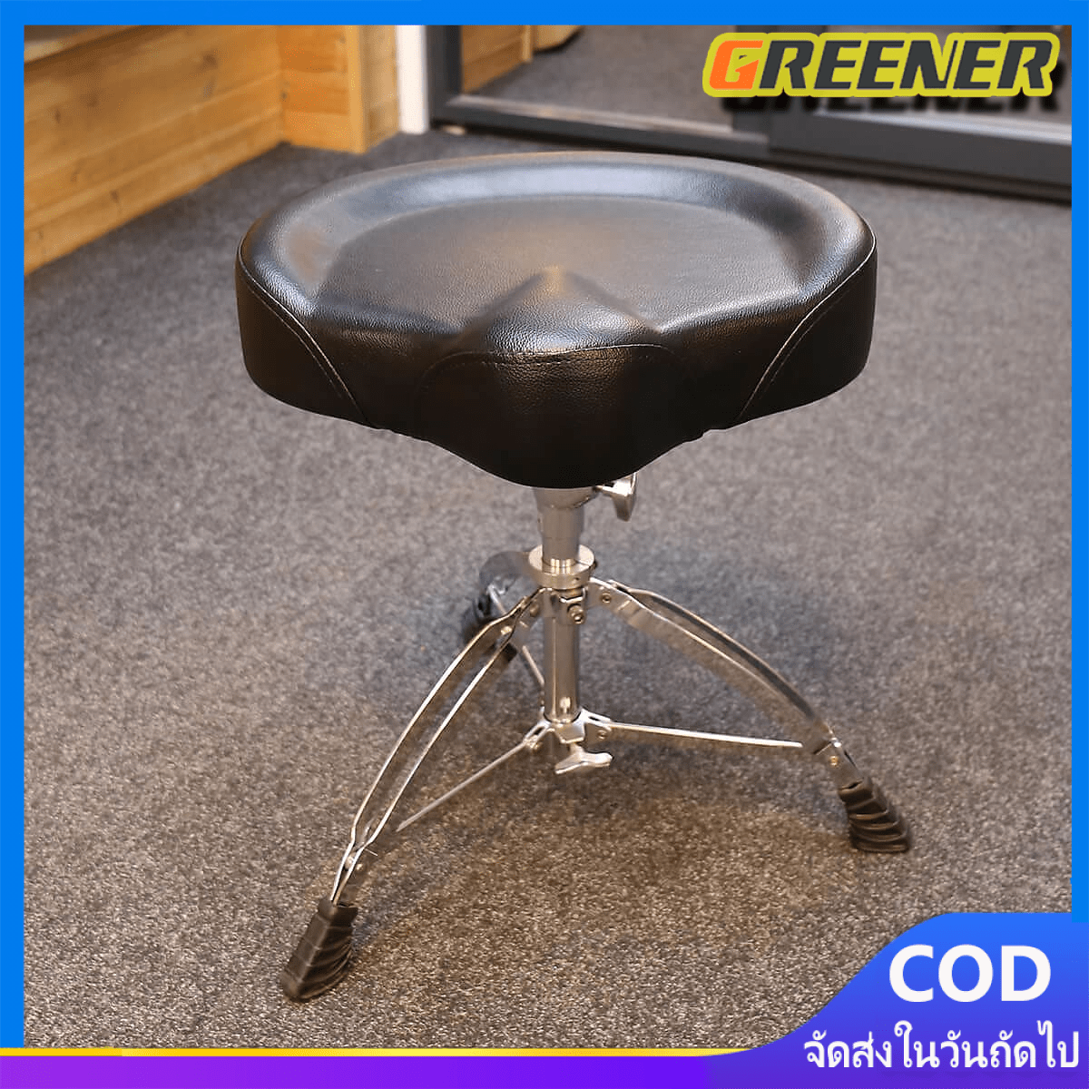 Greener เก้าอี้กลอง อานม้า เบาะใหญ่ นั่งสบาย ขาตั้ง สแนร์ ขาสแนร์ ขาตั้งสแนร์ แบบโลหะ 3 ขา ปรับสูงได้ 50 – 70 ซม