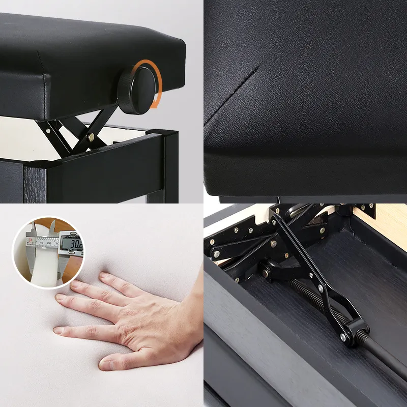 - 2. เบาะเก้าอี้เปียโน ทำจากหนัง PU สีดำ