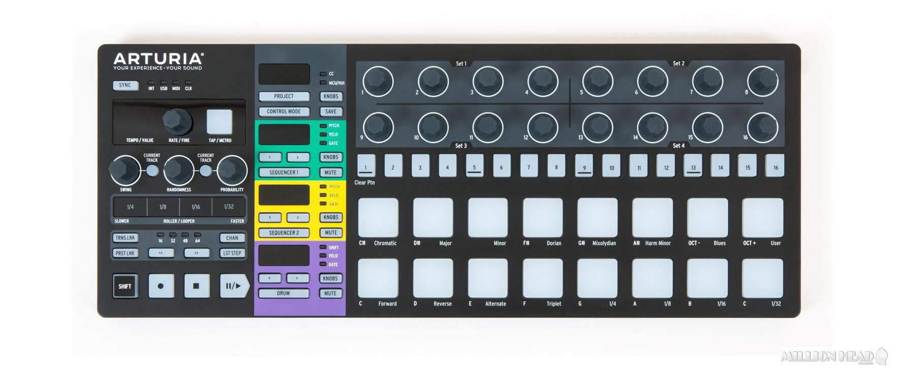 Arturia : BeatStep Pro (Black) by Millionhead (คีย์บอร์ดประเภท Sequencer & Controller โดยจะสามารถ Sequence เสียงกลองได้ 16 แทร็ค (1 Pad ต่อ 1 แทร็ค) ปรับแต่งได้อย่างเต็มที่กับลูกบิดและ Pad ที่ไวต่อสัมผัส ฟังก์ชั่นการใช้งานที่เกินตัว)