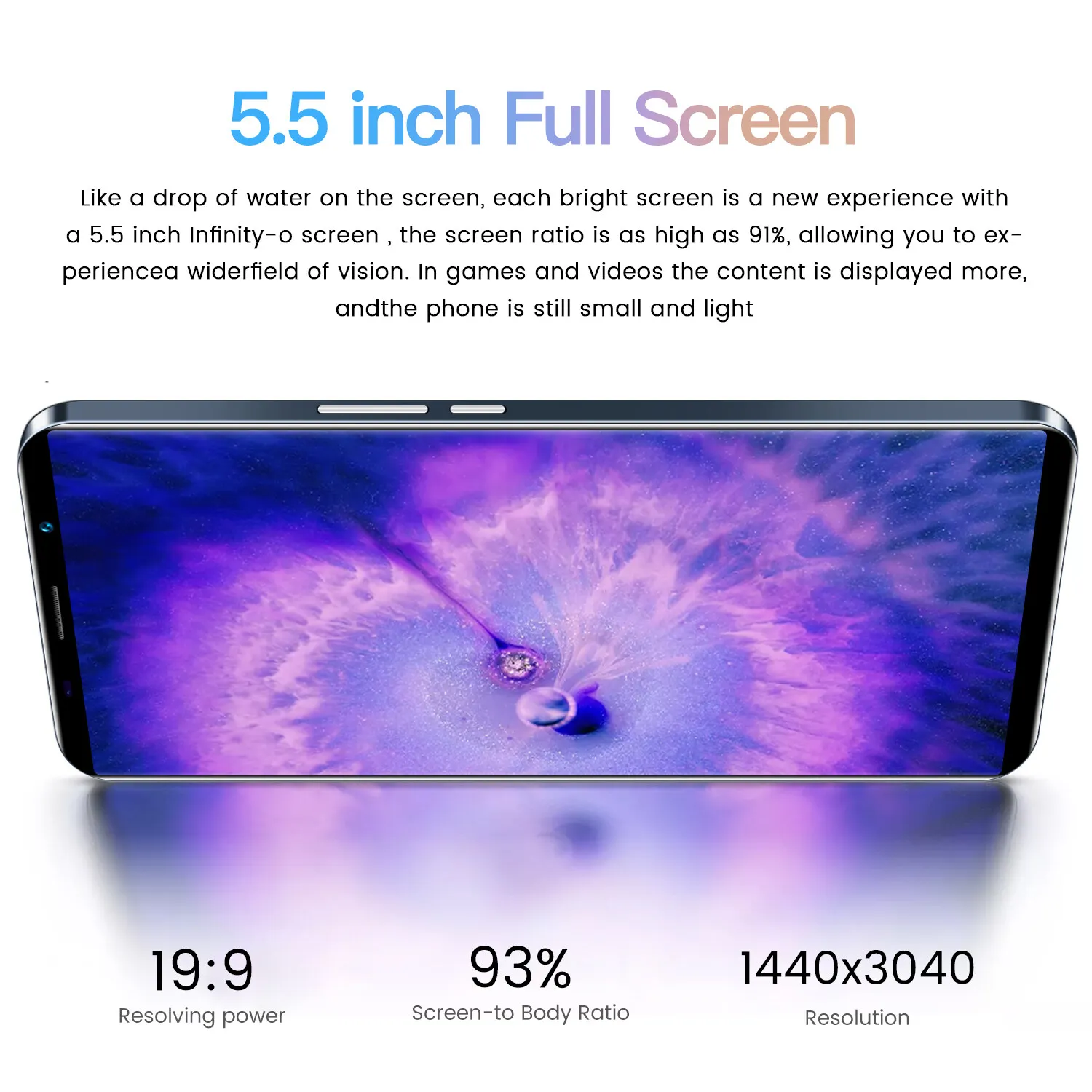 4.Screen: 5.8 HD+ 、 1080*2320