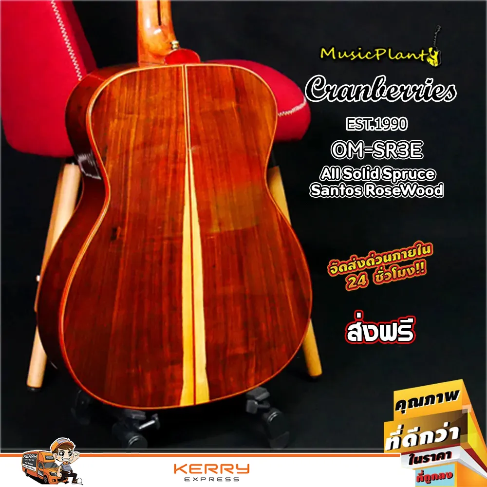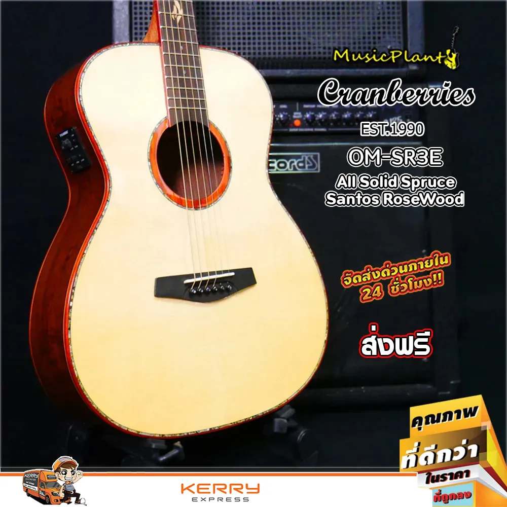 • Cranberries กีตาร์โปร่งไฟฟ้า ขนาด 40 นิ้ว ทรง OM รุ่น OM-SR3E พร้อม HardCaseไม้แท้ทั้งตัว All Solidไม้หน้า Solid Spruceไม้ข้างและไม้หลัง Solid Santos RoseWood ปิ๊กอัพ FishMan