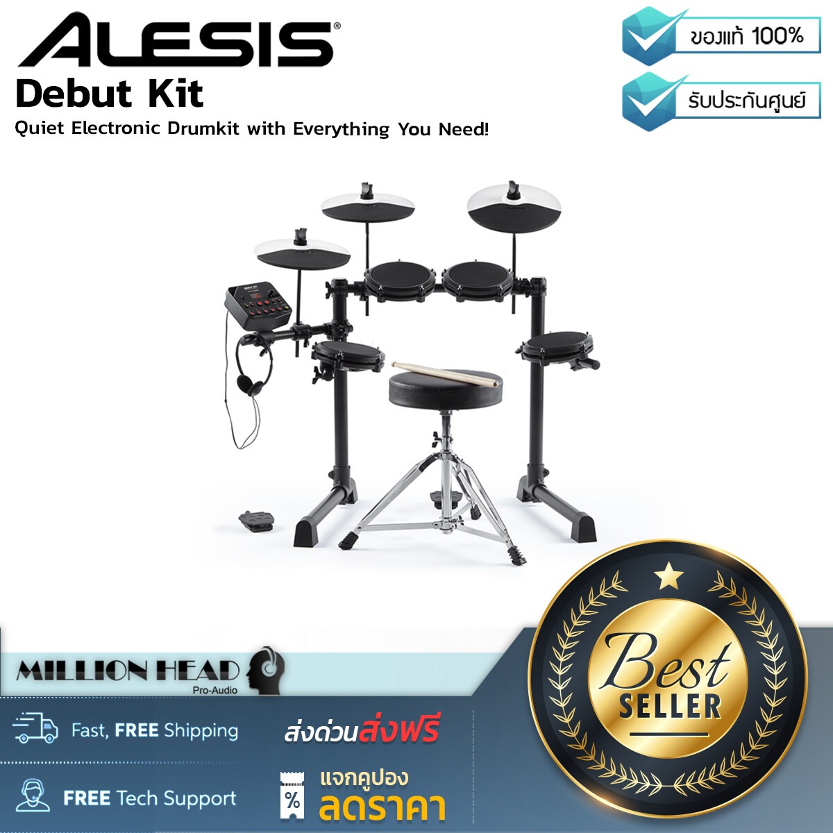 Alesis : Debut Kit by Millionhead (ชุดกลองรุ่นเริ่มต้นแต่ความสามารถครบเครื่อง โดยที่จะมีแป้นกลองมาให้ 4 แป้น ตอบโจทย์ดนตรีทุกแนวเพลง)