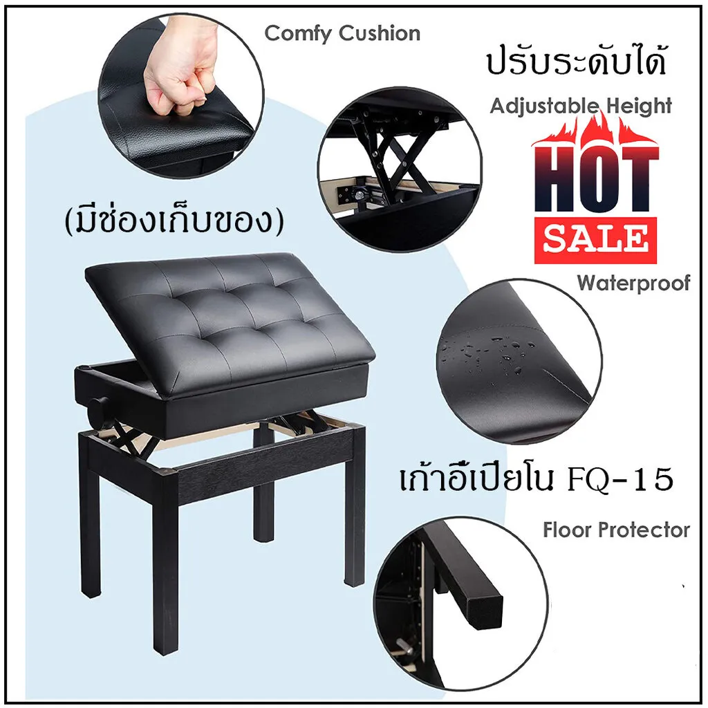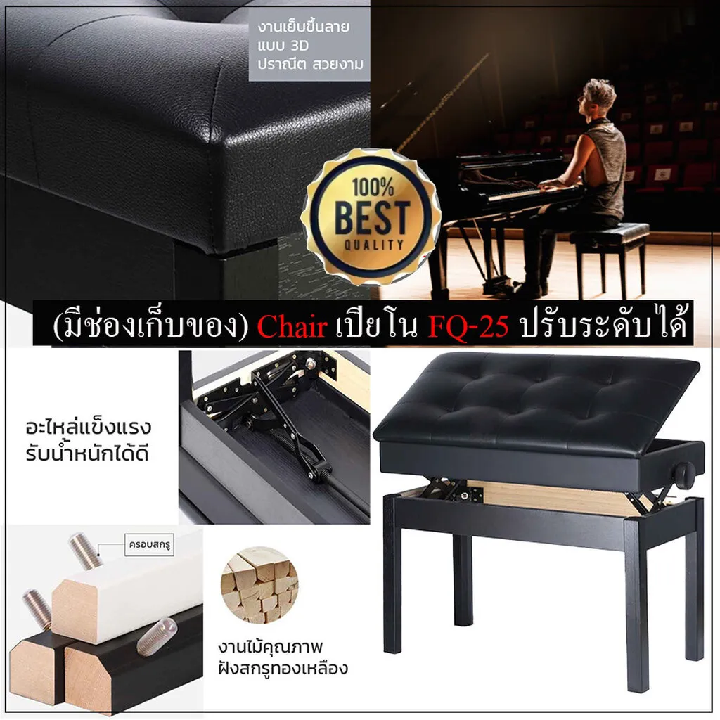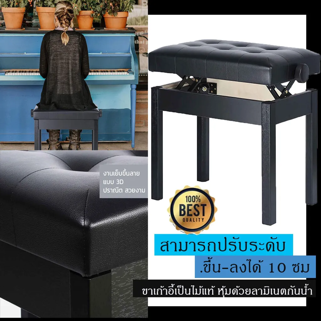 - 4. เก้าอี้เปียโน สามารถปรับระดับได้สูงขึ้น 10 ซม.