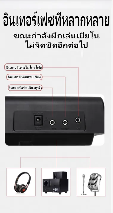- [ฟังก์ชั่นอื่น ๆ ] การปรับระดับเสียง / เพลง / บันทึก / เล่น / ล่าช้า / เริ่ม / หยุด / คอร์ดนิ้วเดียว / คอร์ดหลายนิ้ว / กลองคีย์บอร์ด / คีย์บอร์ดคู่ / ความเร็วในการเต้น / โหมดพลังงานคู่