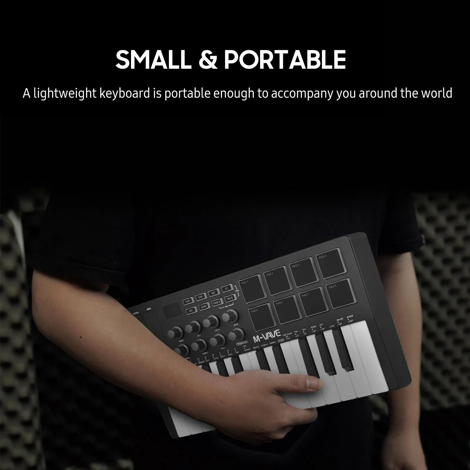 M-VAVE แป้นพิมพ์ควบคุม MIDI 25ปุ่มแบบพกพาขนาดเล็กตัวควบคุมมิดิแป้นพิมพ์ยูเอสบีที่มี25ความเร็วคีย์ที่มีความสำคัญ8แผ่นไฟ RGB Backlit 8ลูกบิด