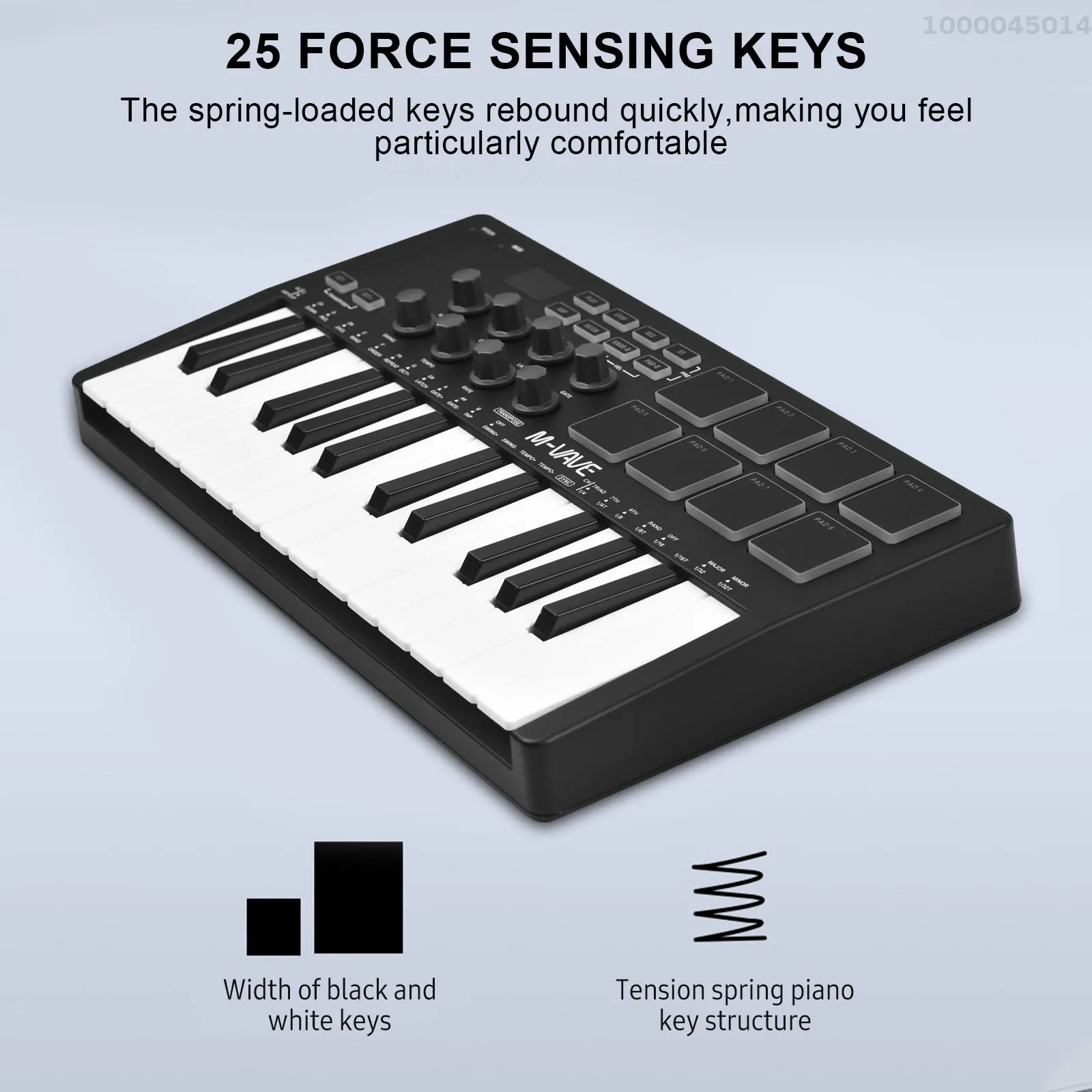 F2092 M-VAVE แป้นพิมพ์ควบคุม MIDI 25ปุ่มแบบพกพาขนาดเล็กตัวควบคุมมิดิแป้นพิมพ์ยูเอสบีที่มี25ความเร็วคีย์ที่มีความสำคัญ8แผ่นไฟ RGB Backlit 8ลูกบิด