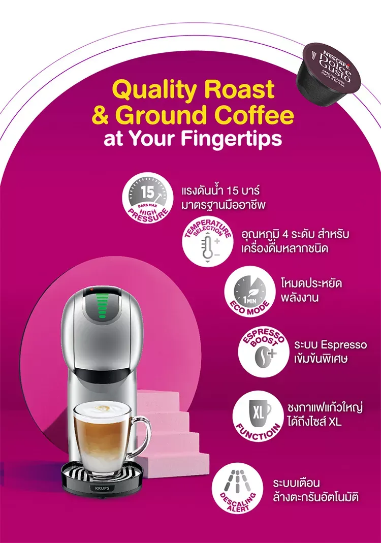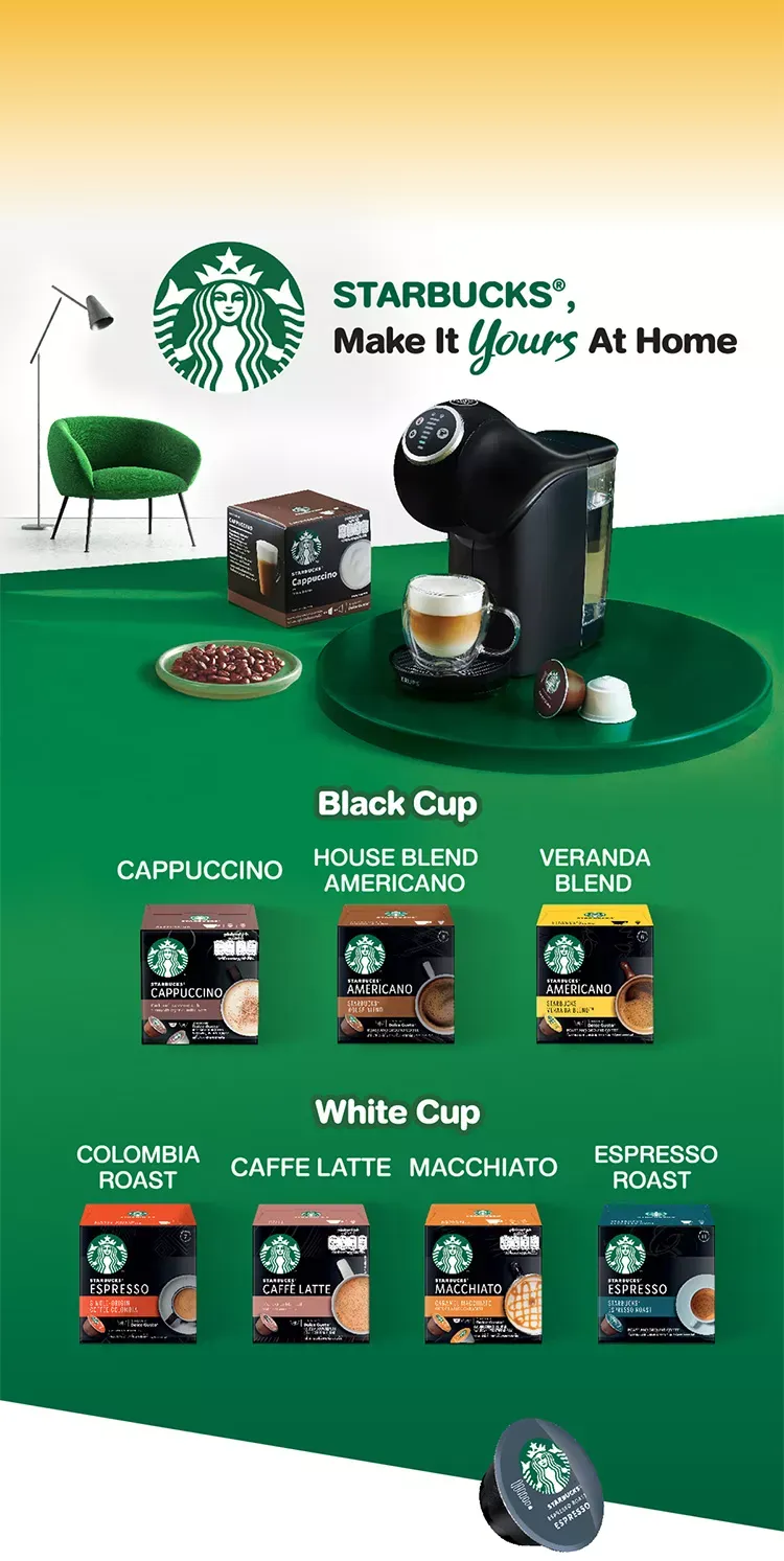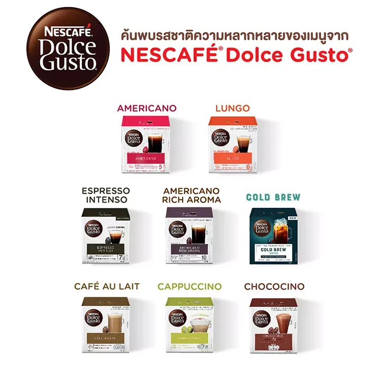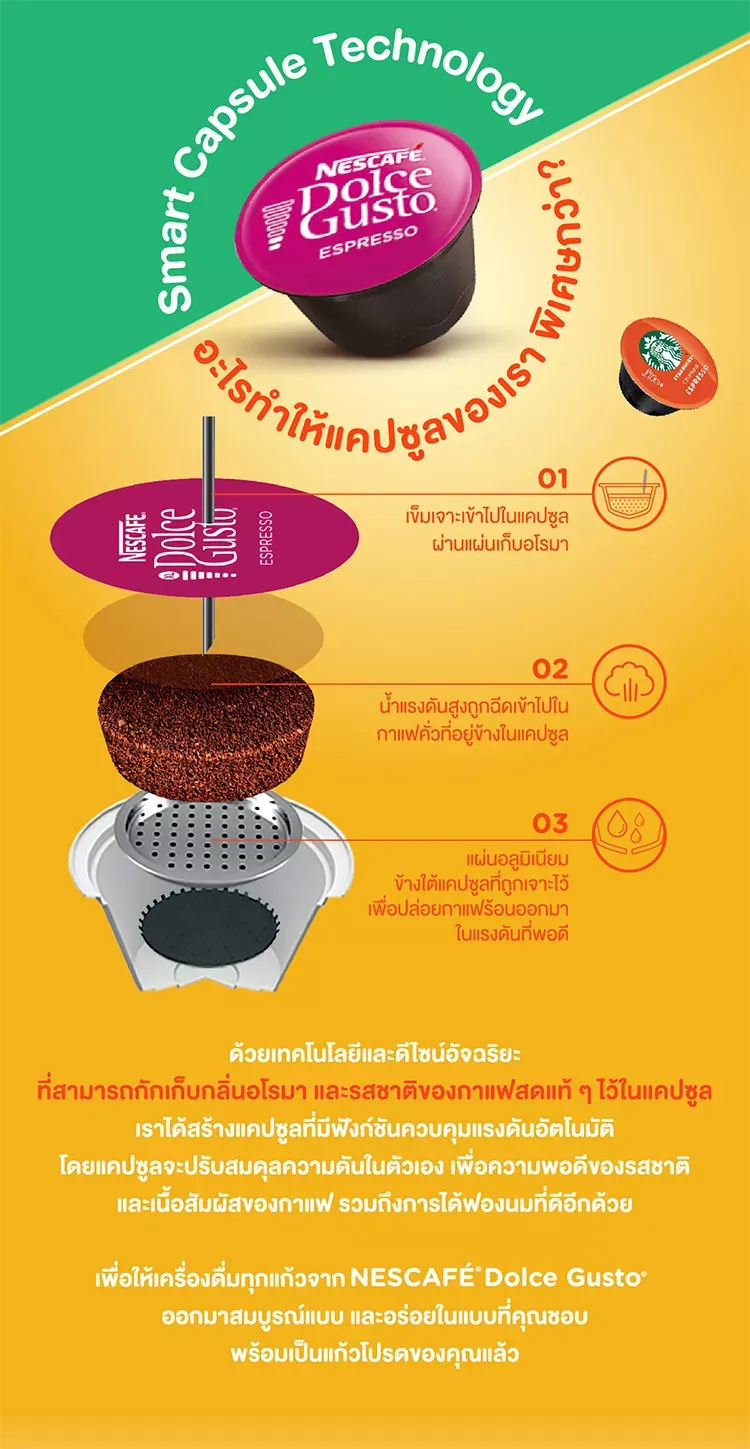 • หมายเหตุ: แคปซูลของ Nescafe Dolce Gusto และ Starbucks By Nescafe Dolce Gusto ที่จำหน่ายในช่องทาง Nescafe Dolce Gusto Official Shop สามารถใช้งานได้กับเครื่องชงกาแฟ Nescafe Dolce Gusto ทุกรุ่นที่จำหน่ายในช่องทาง Nescafe Dolce Gusto Official Shop เท่านั้น