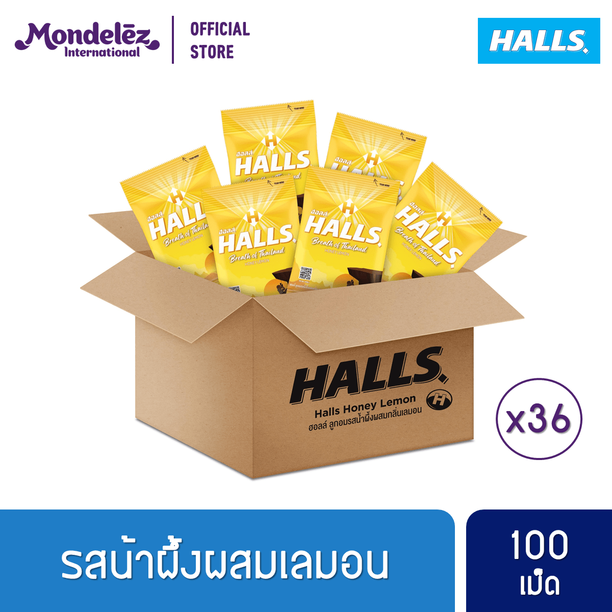 F2118 [ยกลัง 36 ถุง] Halls Honey Lemon ฮอลล์ ลูกอมรสน้ำผึ้งผสมกลิ่นเลมอน แบบถุง 100 เม็ด (280 กรัม)