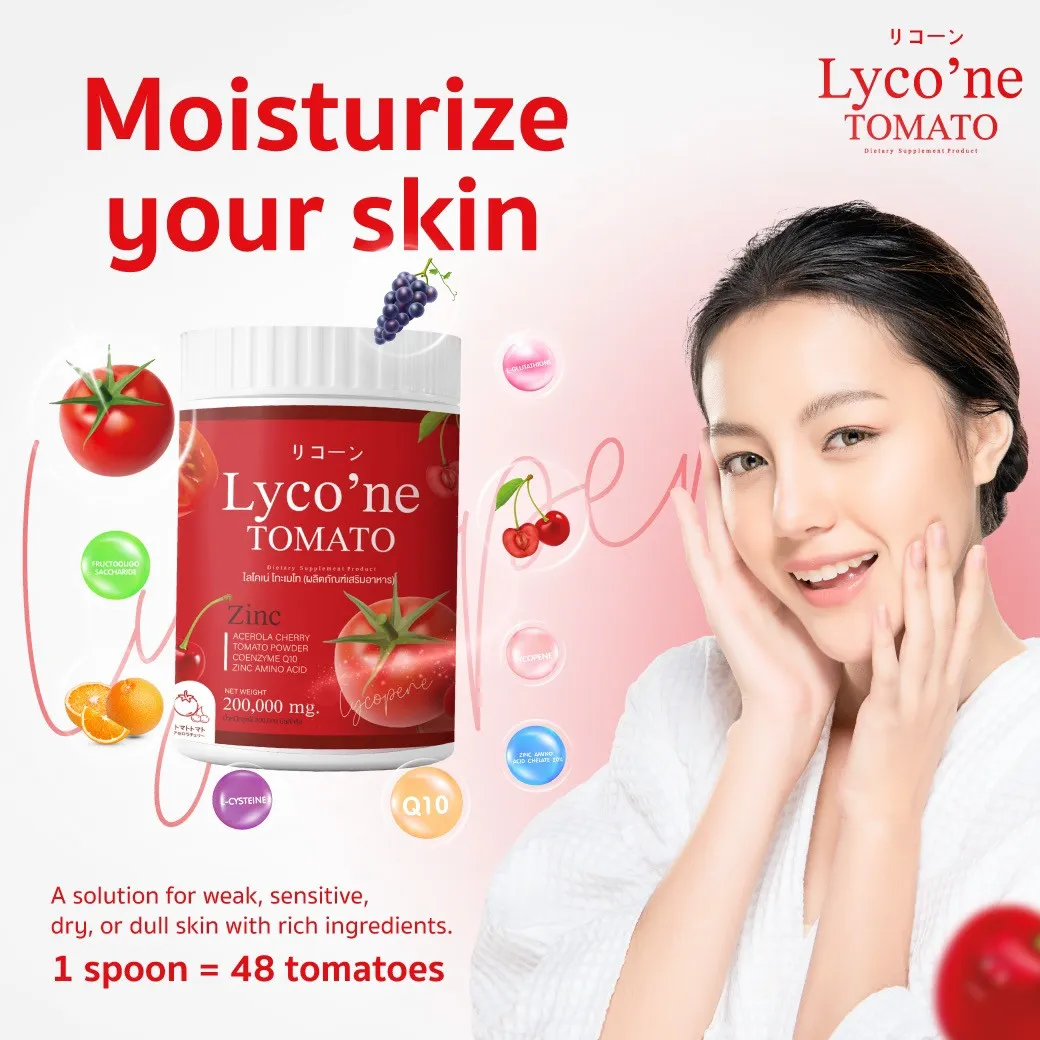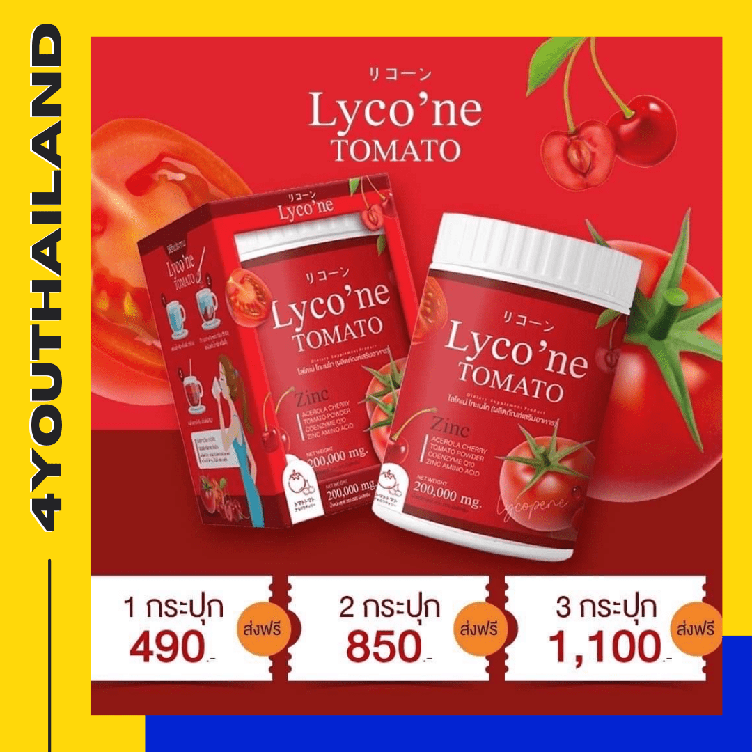 F2132 ไลโคเน่ 1 ฟรี!! 1 Lyco’ne Tomato น้ำมะเขือเทศ วิตามินมะเขือเทศ ชงดื่ม ไม่คาว กระปุก 200กรัม EXP 6.6.24