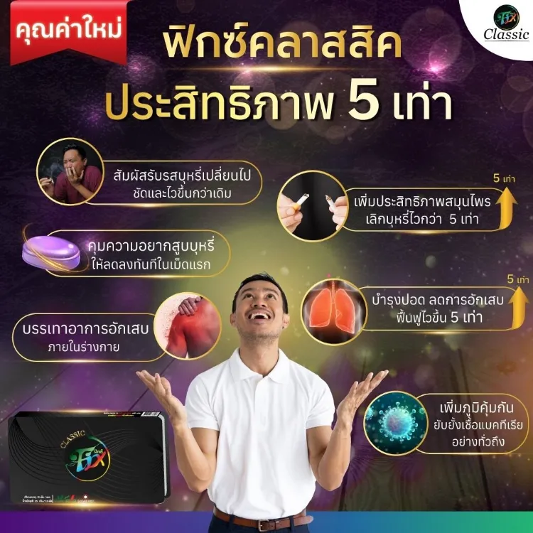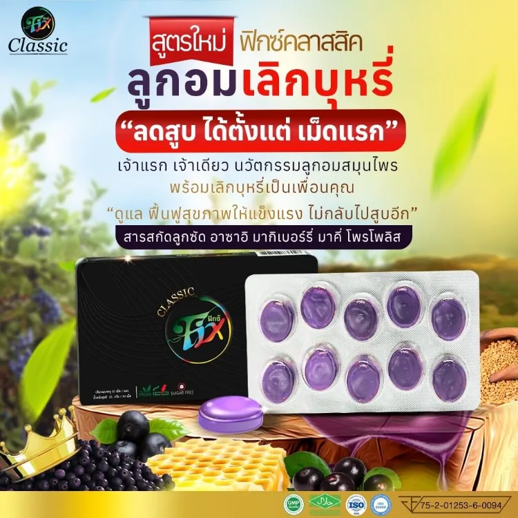 FixClassic ฟิกซ์คลาสสิก ลูกอมเลิกบุหรี 5 แผง ลูกอมสมุนไพร ลดสูบ ลูกอมเลิกบุร ลูกอมเลิกบุหรี (สูตรใหม่ ของแท้ 100%)