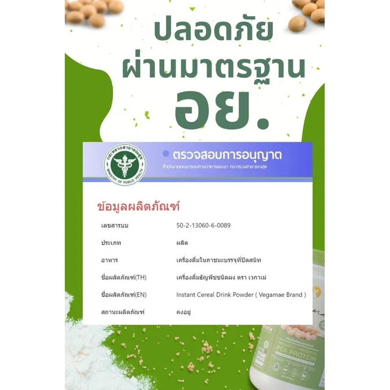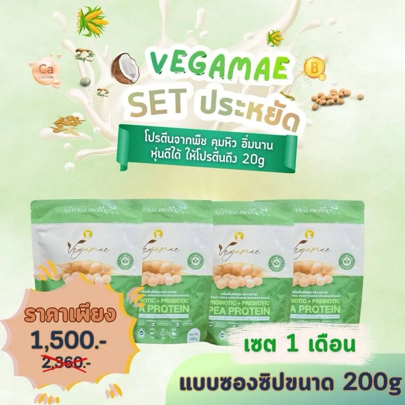 VEGAMAE เวกาเม่ แบบซอง 200 g. โปรตีนถั่วลันเตาสีทอง ไม่มีนมวัว ไม่มีกลูเตน-แลคโตส