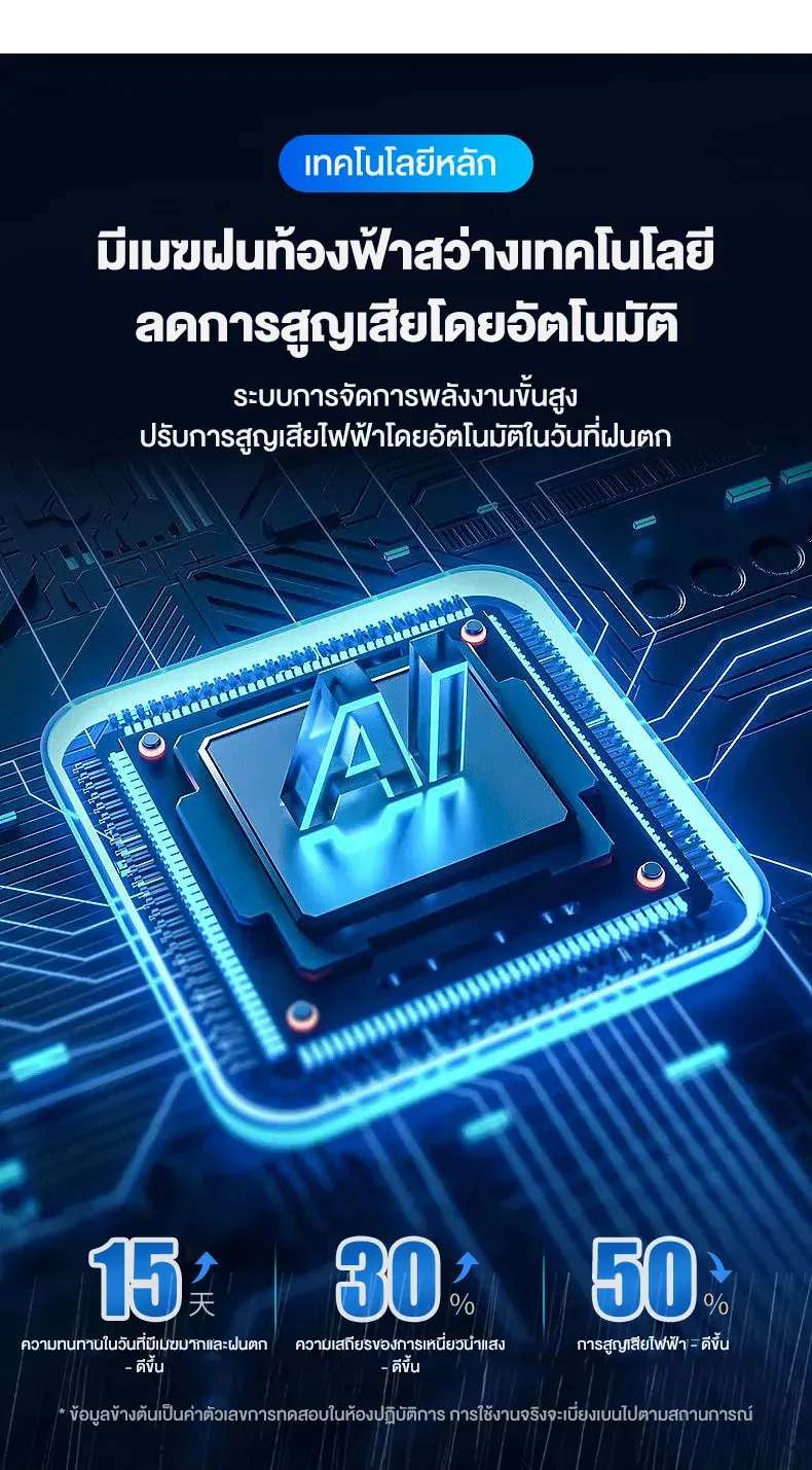 ⚡ไม่เสียค่าไฟฟ้าแบตเตอรี่ความจุสูงใช้พลังงานไม่สะดุดในวันที่มีเมฆมากและฝน