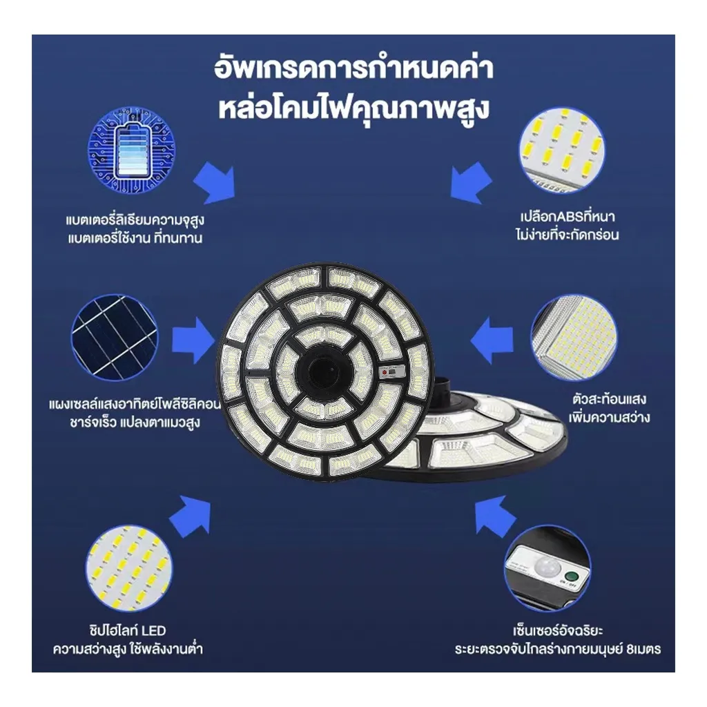 ไฟโซล่าเซลล์ UFOไฟถนน Solar Light ไฟถนนยูเอฟโอ 800000W ไฟถนนLED โซล่าเซลล์ ไฟแสงอาทิตย์ IP67 แสงสีขาว โคมไฟถนน