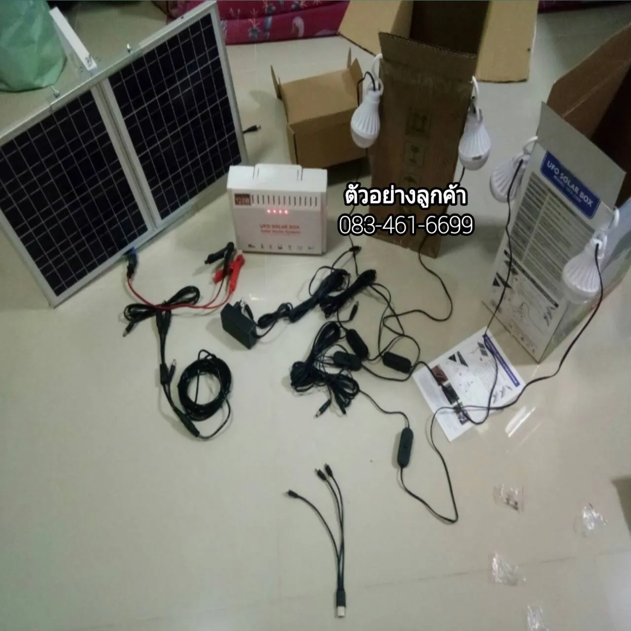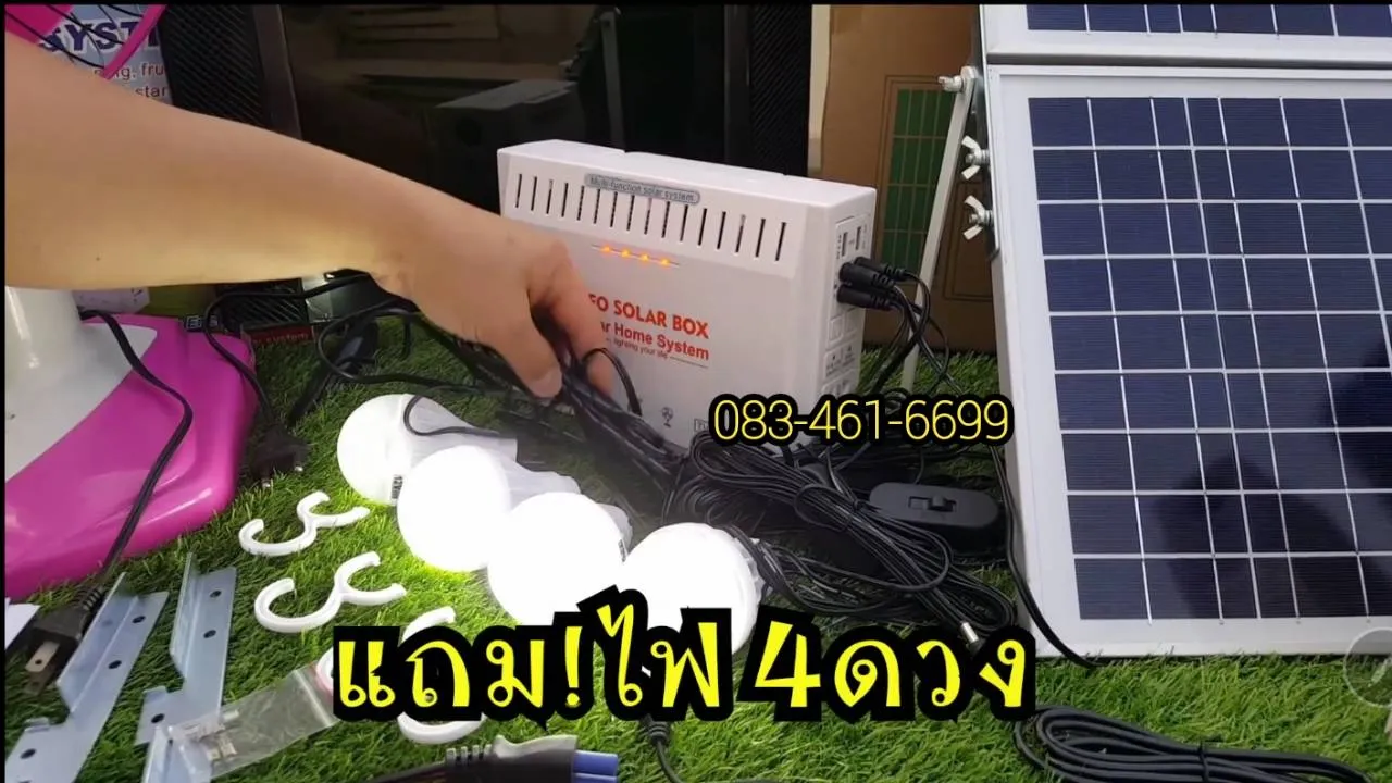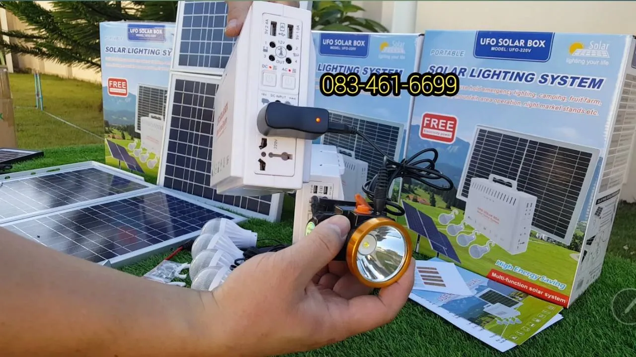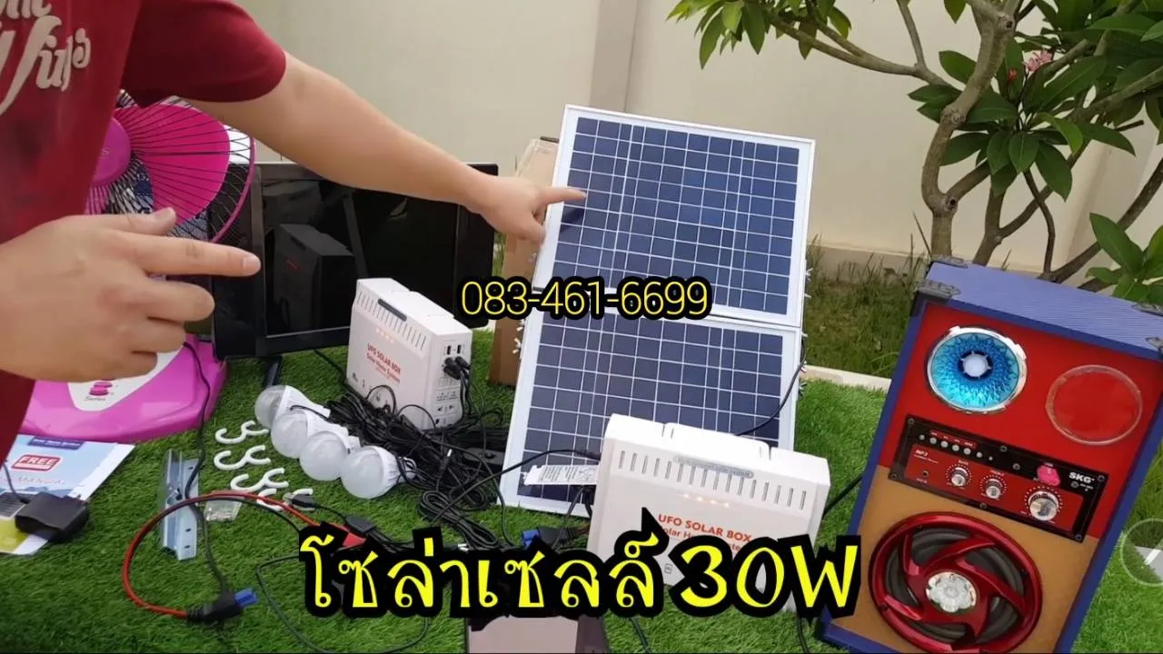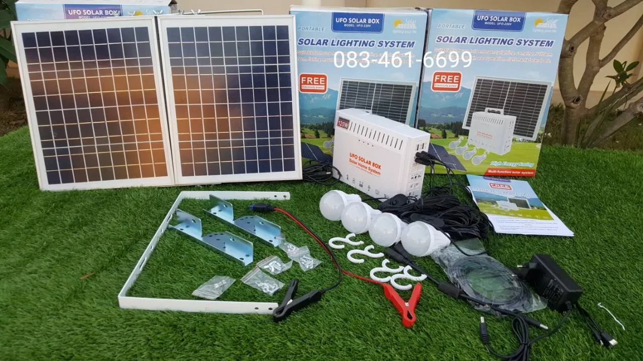โซล่าเซลล์ 30W แปลงเป็นไฟบ้านในตัวAC220V+หลอดไฟLED4ดวง รุ่นUFO-220V