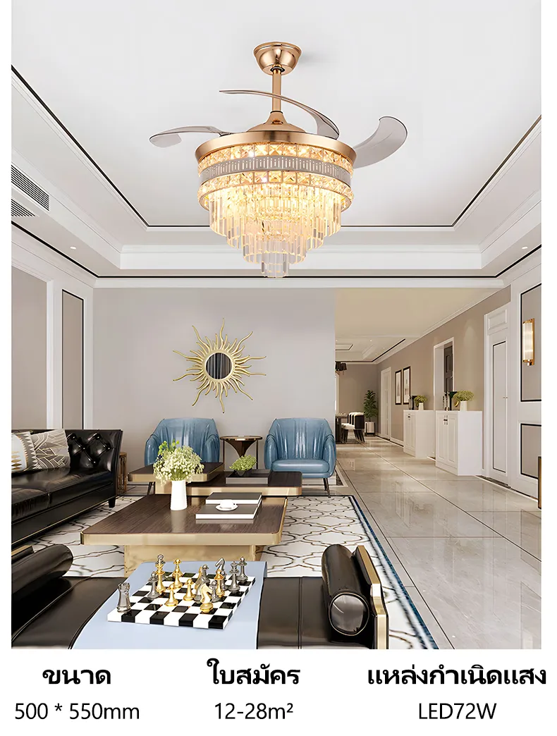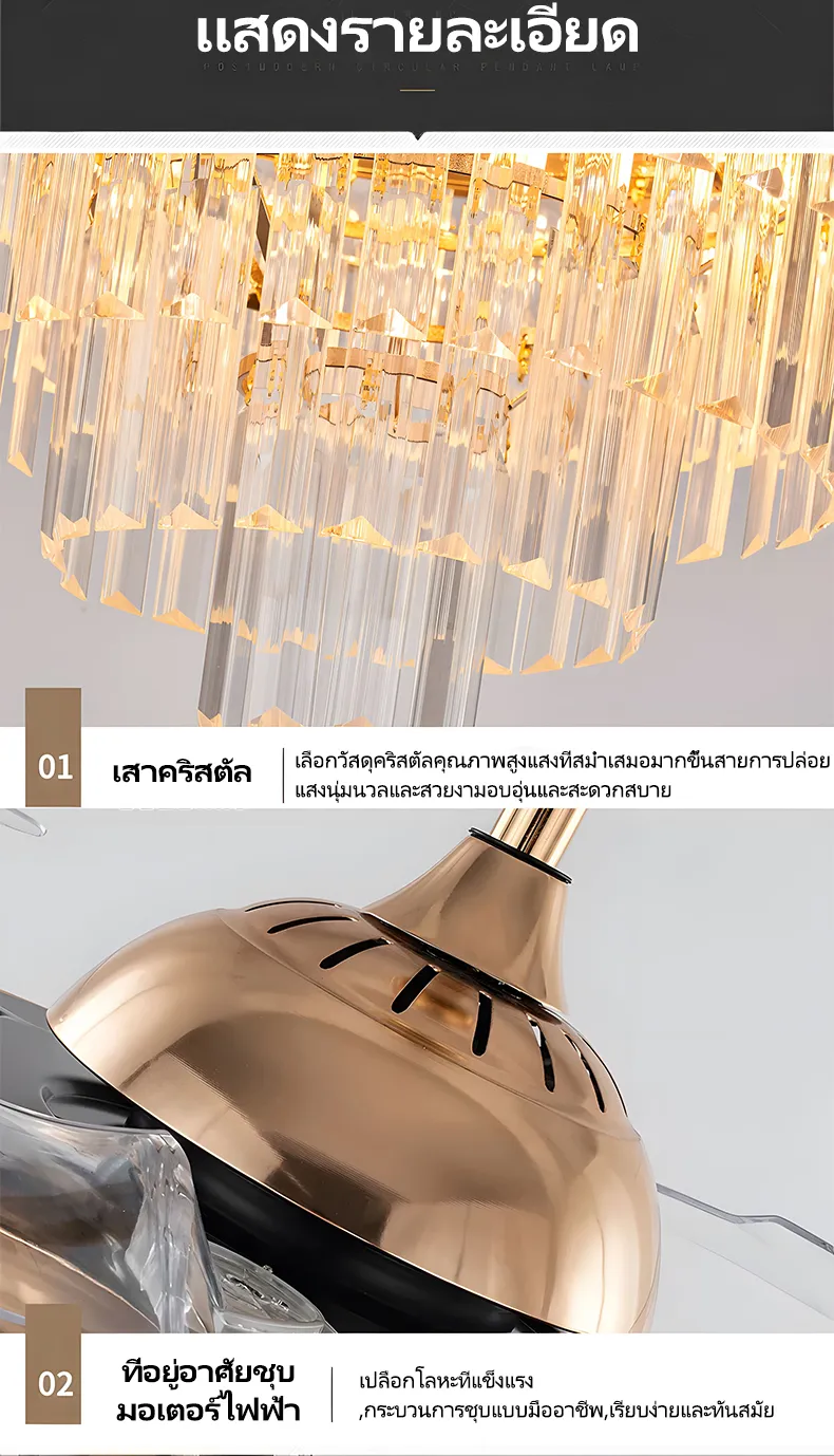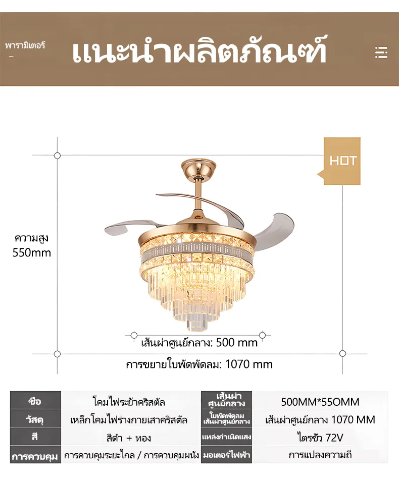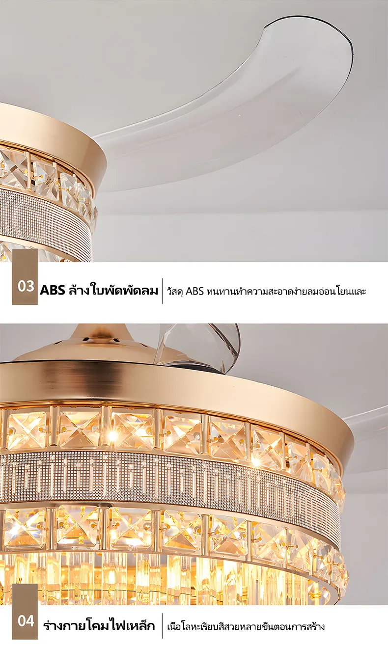 GEJIESE โคมไฟเพดาน พัดลมโคมไฟ โคมไฟพัดลมเพดาน พัดลมเพดาน พัดลมติดเพดาน โคมไฟคริสตัล เปลี่ยนสีไฟได้3สี มีรีโมทควบคุม ไฟพัดลมอัจฉริยะLED ไฟระย้า