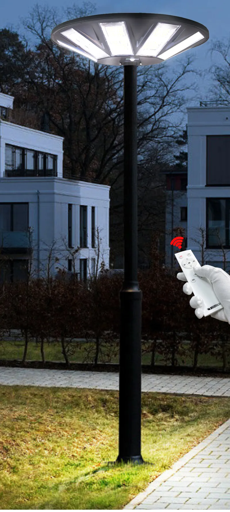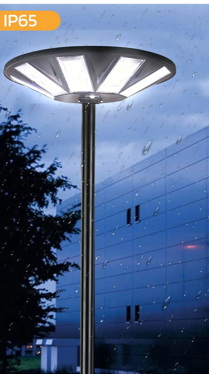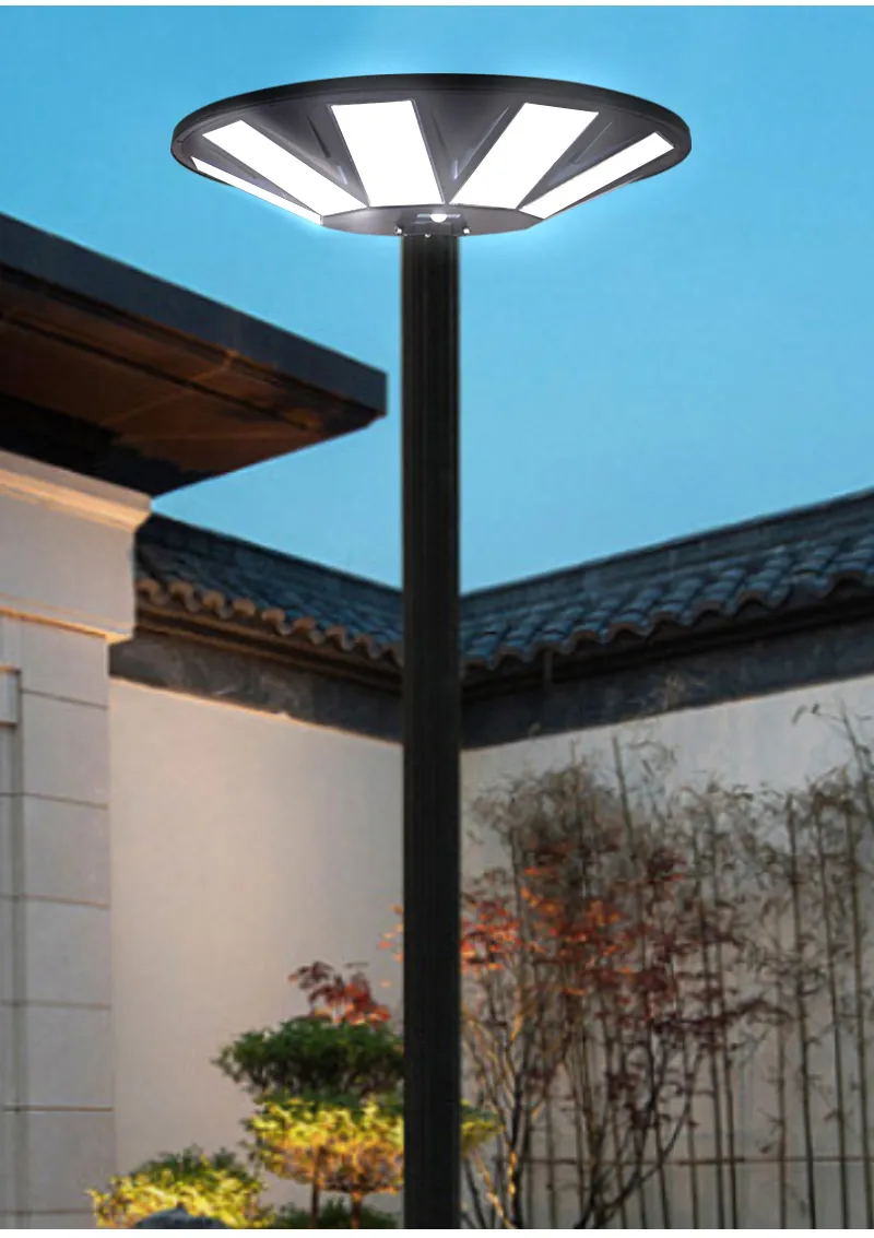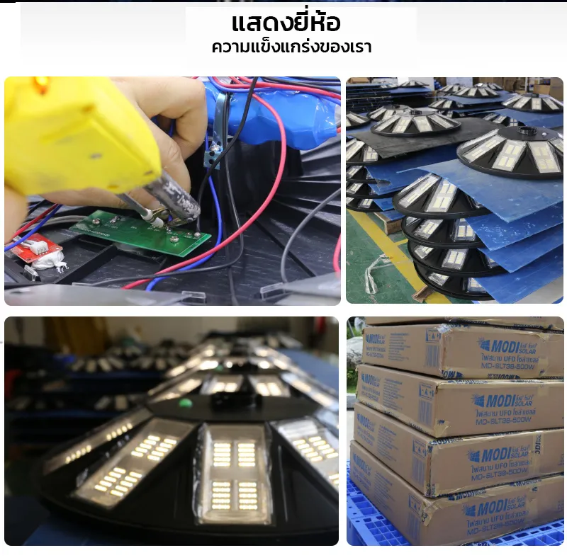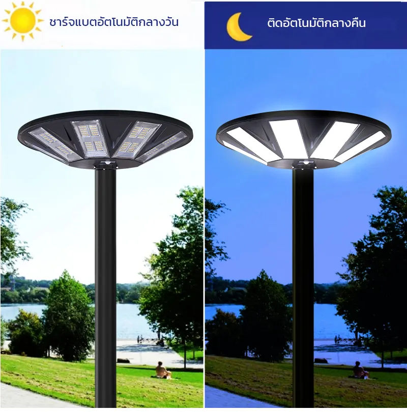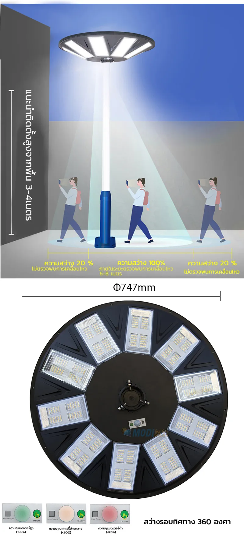 MODI โคมไฟถนนสวมเสาโซล่าเซลล์ 500W (5000lm)ไฟสปอตไลท์โซล่าเซลล์ ส่องแสงได้ 360องศา UFO พลังงานแสงอาทิตย์ LED เซ็นเซอร์ตรวจจับความเคลื่อนไหว IP65