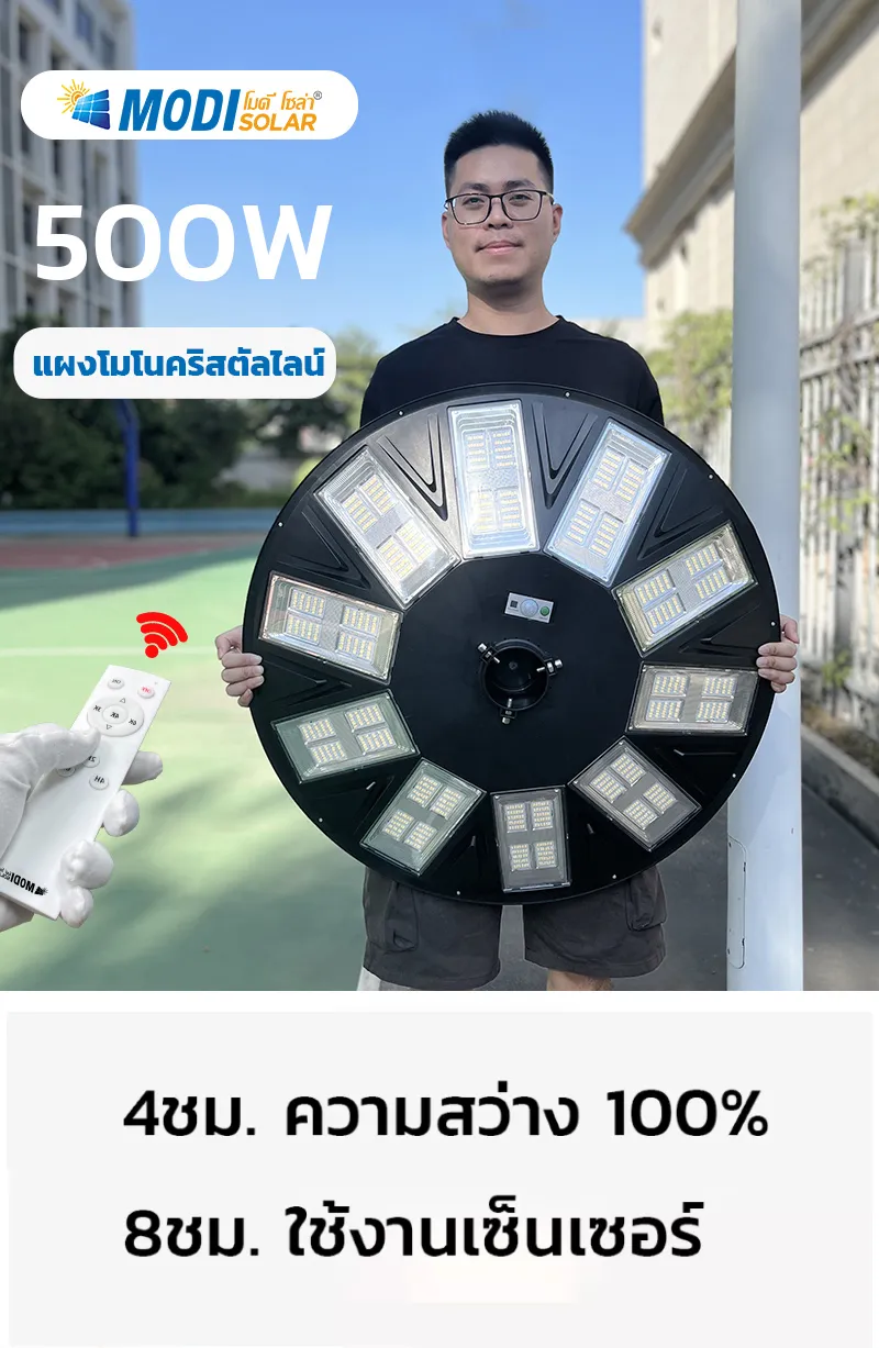 - *****MODI โคมไฟถนนสวมเสาโซล่าเซลล์ โคมไฟสปอตไลท์โซล่าเซลล์ 500W square landscape solar light ส่องแสงได้ 4 ทิศทาง โคมไฟถนน พลังงานแสงอาทิตย์ LED เซ็นเซอร์ตรวจจับความเคลื่อนไหว Solar street light IP65
