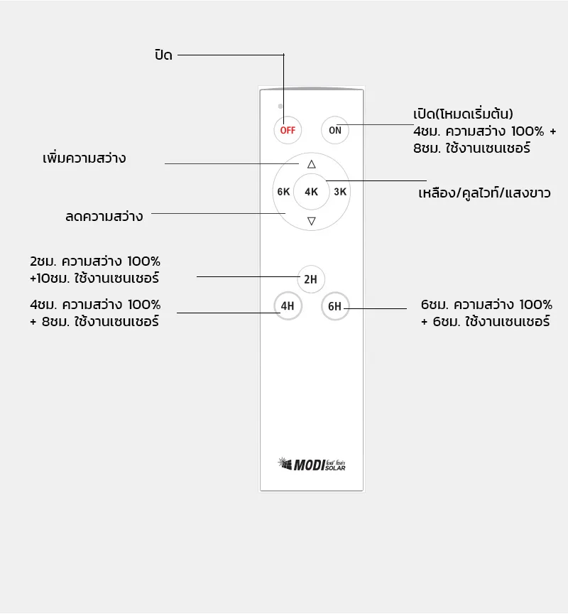 - 6ชม. ความสว่าง 100% + ใช้งานเซ็นเซอร์ถึงเช้า)