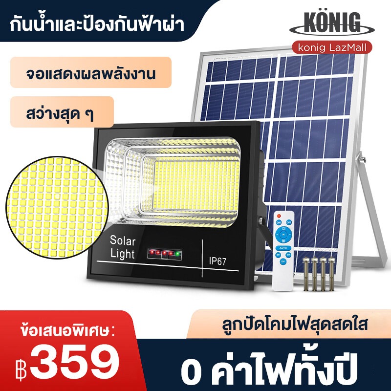 KONIG 1000W Solar lights ไฟโซล่า ไฟสปอตไลท์ กันน้ำ ไฟ Solar Cell ใช้พลังงานแสงอาทิตย์ โซลาเซลล์ ไฟถนนเซล ไฟกันน้ำกลางแจ้ง ไฟโซล่าเซลล์ ไฟ โซล่าเซลล์ led
