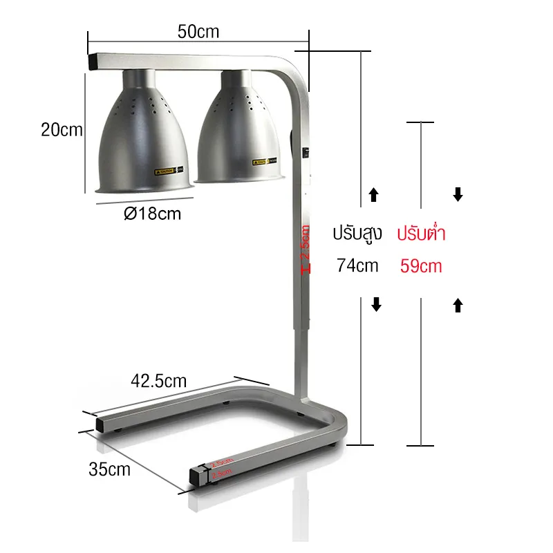 โคมไฟอุ่นอาหาร อินฟาเรด 500W ใช้สำหรับอุ่นอาหารให้รสชาติยังคงอยู่ และน่ารับประทาน สามารถปรับระดับสูง-ต่ำ