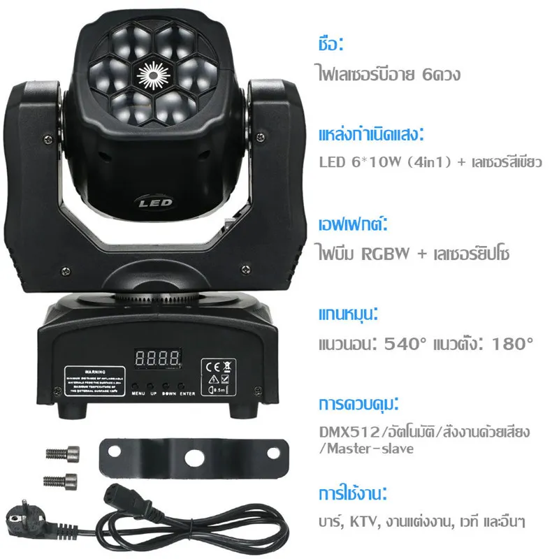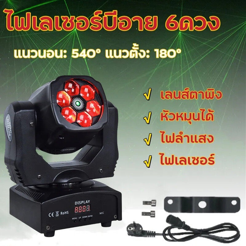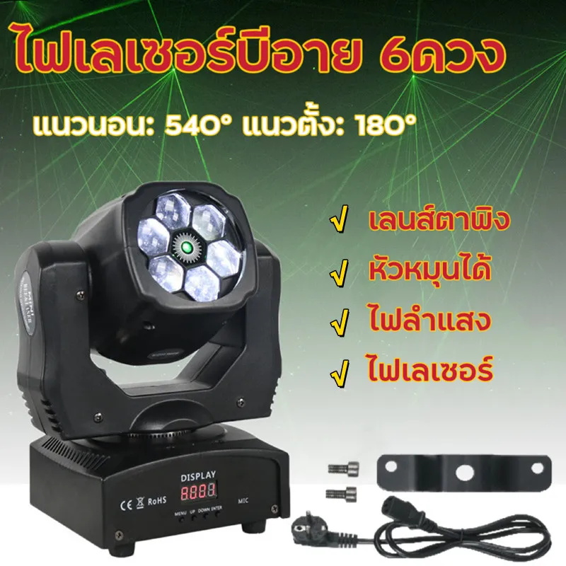 ไฟมูฟวิ่ง ไฟเลเซอร์ปาร์ตี้ ไฟบีม ไฟปาร์ตี้เทคโนโลยี ไฟดิสโก้ ไฟแฟลชปาร์ตี้ ไฟหมุนดิสโก้ เลเซอร์ปาร์ตี้ LED 6 Bee Eye Beam Light ไฟเลเซอร์ ไฟเลเซอร์บีอาย 6 ดวง ไฟเทคในผับหมุน ไฟมูฟวิ่ง