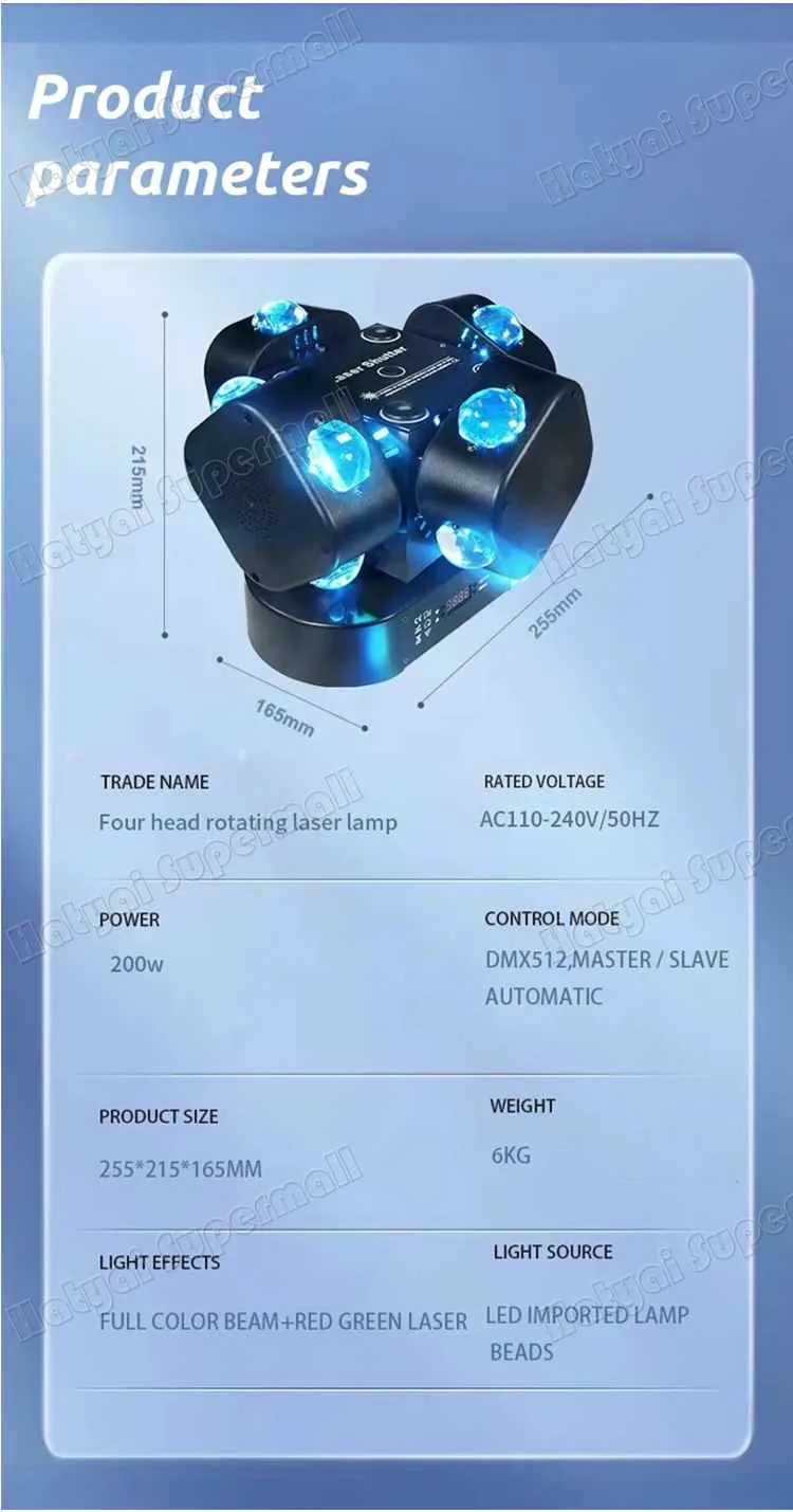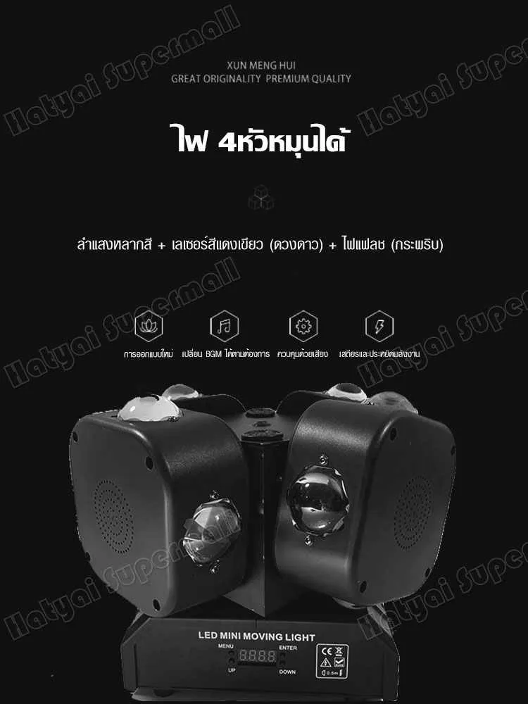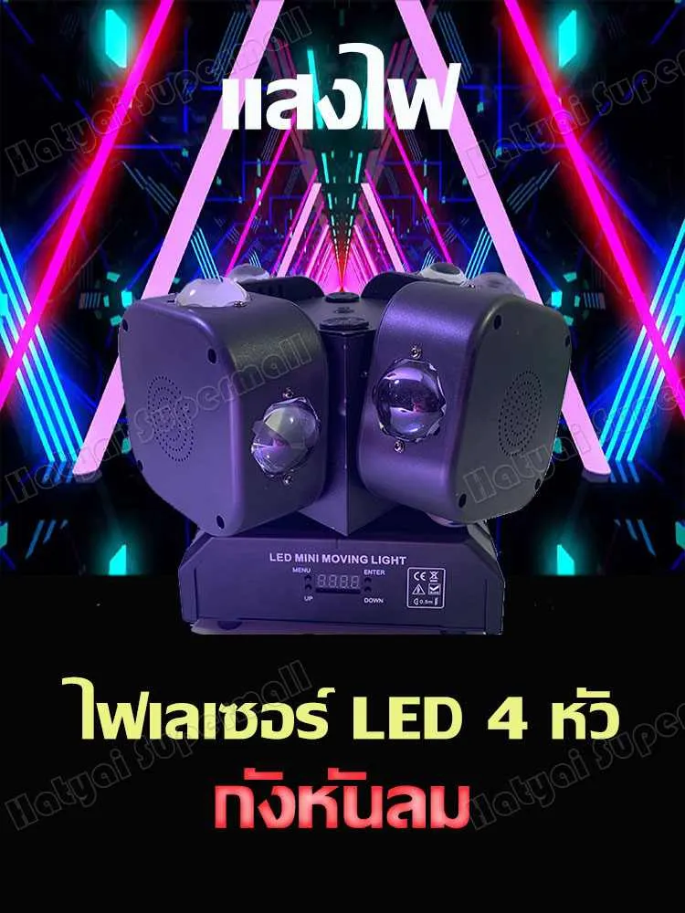 ไฟเวที ไฟเลเซอร์ 4หัว ไฟมูฟวิ่งเฮด ไฟ LED Strobe Light ไฟแฟลช แสงเลเซอร์