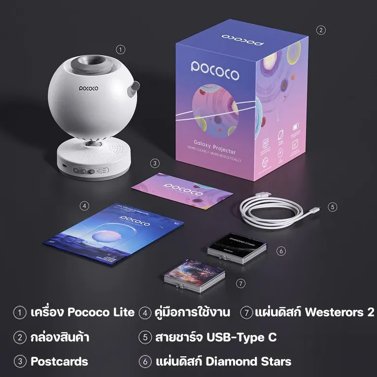 F2253 POCOCO LITE เครื่องฉายดวงดาว กาแลคซี่ เครื่องฉายท้องฟ้าจำลอง ตกแต่งห้อง Galaxy Projector