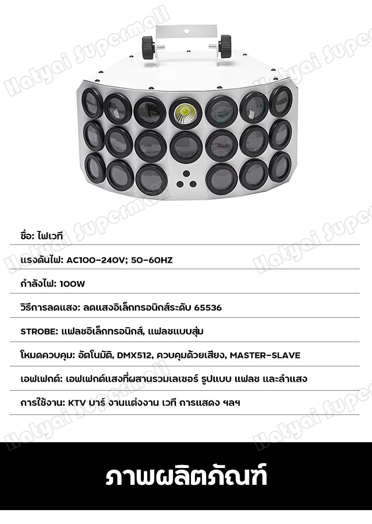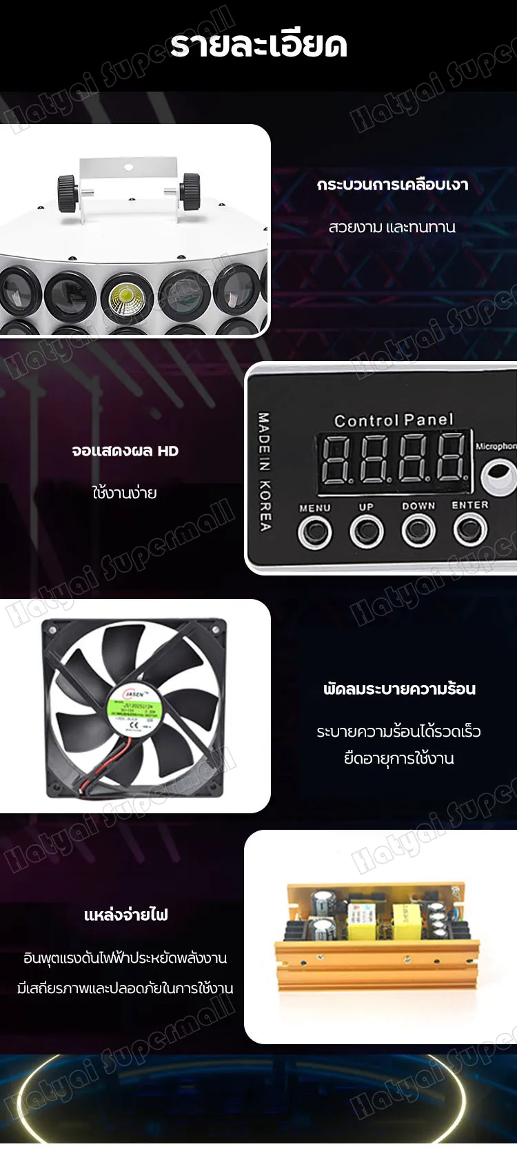 ● โหมดควบคุม: DMX512, อัตโนมัติ, ควบคุมด้วยเสียง, มาสเตอร์สเลฟ
